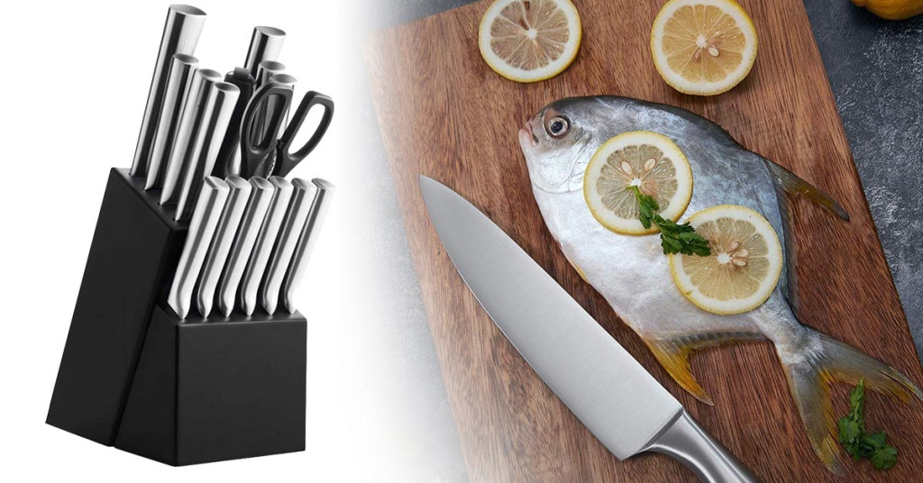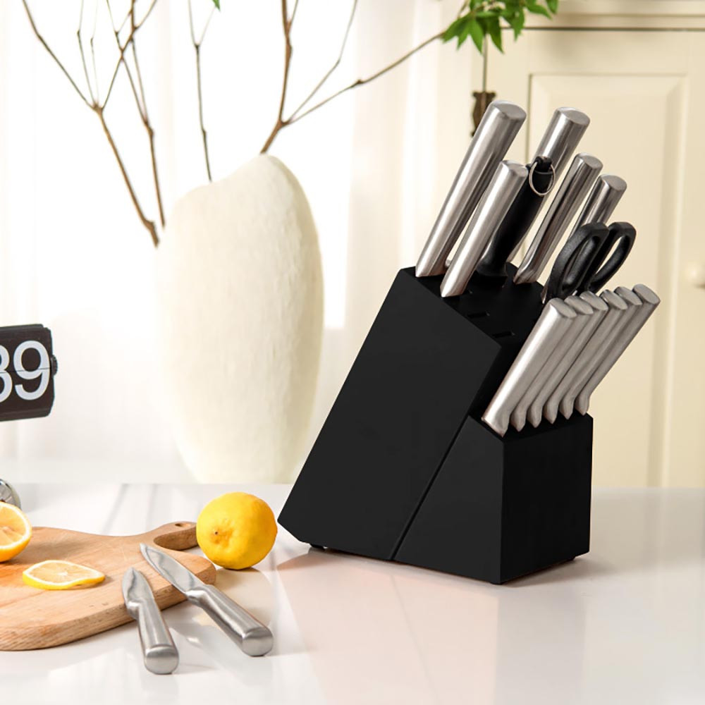 Tato 16dílná sada nožů pokrývá všechny kuchyňské úkoly: krájení, loupání, sekání a další. Elegantní dřevěný blok může sloužit i jako dekorace.