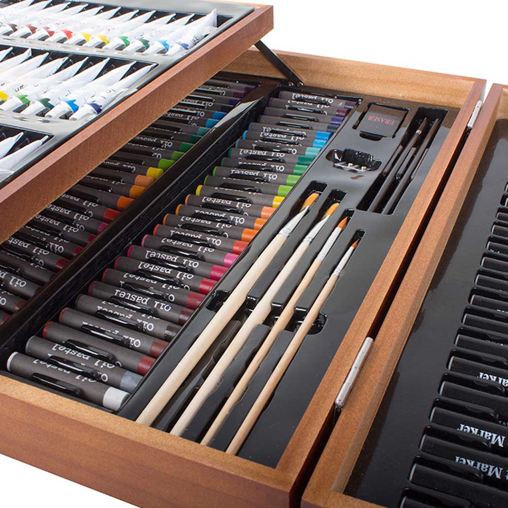 Dřevěný box má přihrádky pro každou pomůcku, takže si udržíte pořádek. Díky kompaktním rozměrům si ho můžete vzít kamkoliv – ať už tvoříte doma, ve škole nebo na kreativním výletě.