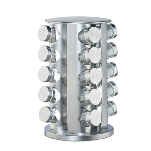 Otočný stojan na koření pro 20 kusů je praktickým řešením, jak mít všechna oblíbená koření přehledně a uspořádaně vystavená v kuchyni. Navzdory kompaktní velikosti nabízí dostatek úložného prostoru a elegantní nerezové provedení ozvláštní kuchyňskou linku.