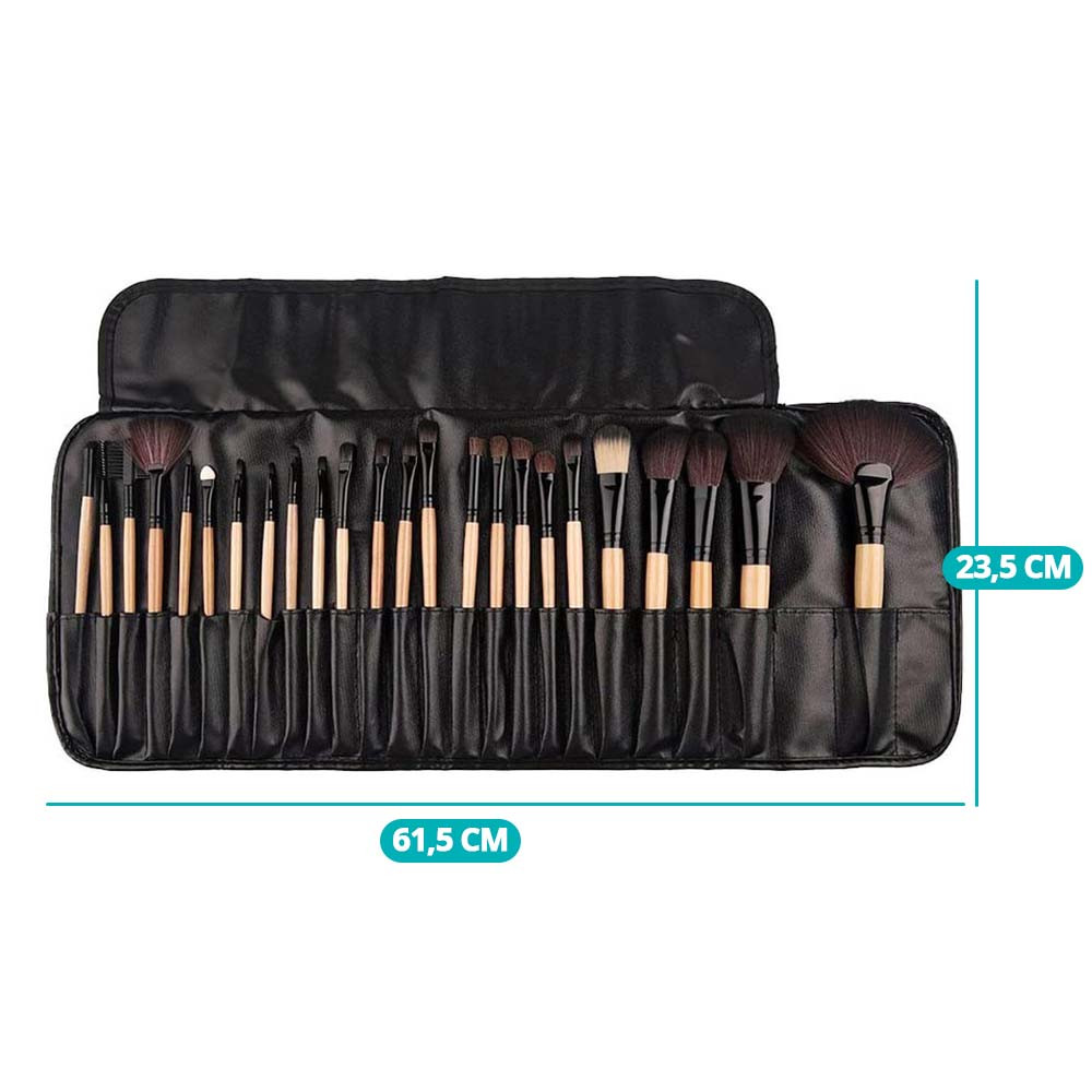 Černé skládací pouzdro z umělé kůže chrání štětce před nečistotami a snadno se vejde do vaší kabelky. Díky tomu si oblíbené štětce můžete vzít s sebou i na cesty.