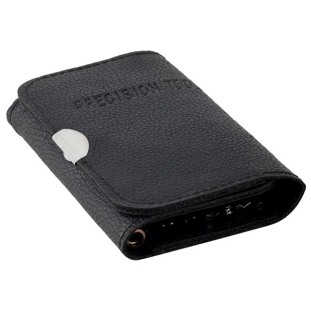 Rukojeť šroubováku má ergonomický, protiskluzový design, který zajišťuje pohodlný úchop i při delší práci. Pouzdro je vyrobeno z měkkého materiálu s koženým vzhledem, což mu dodává elegantní vzhled a zároveň chrání nástroje před poškozením. Díky kompaktní velikosti se snadno vejde do šuplíku, tašky nebo bedny s nářadím.