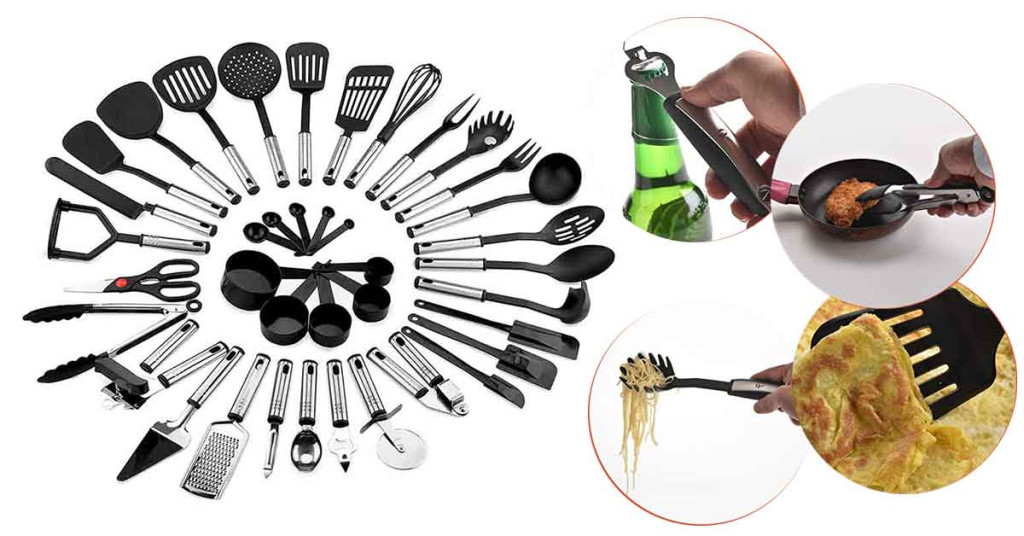 39dílná sada je ideálním společníkem pro začátečníky i profesionály. Sada obsahuje vše, co potřebujete pro vyzkoušení nových receptů, včetně obracečky, metly, špagetové lžíce, měřicích lžic, nože na pizzu a mnoha dalších nástrojů. Tyto nástroje můžete použít nejen při vaření a pečení, ale i při servírování jídel.
