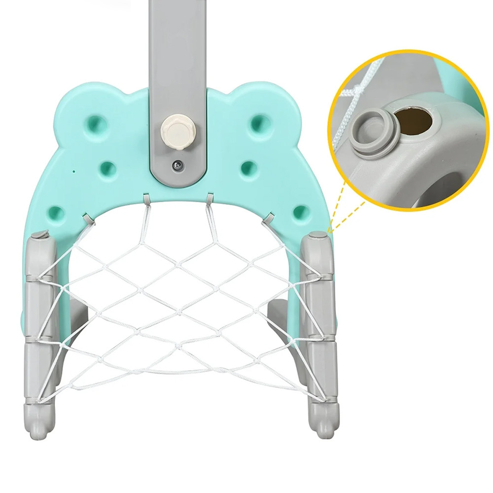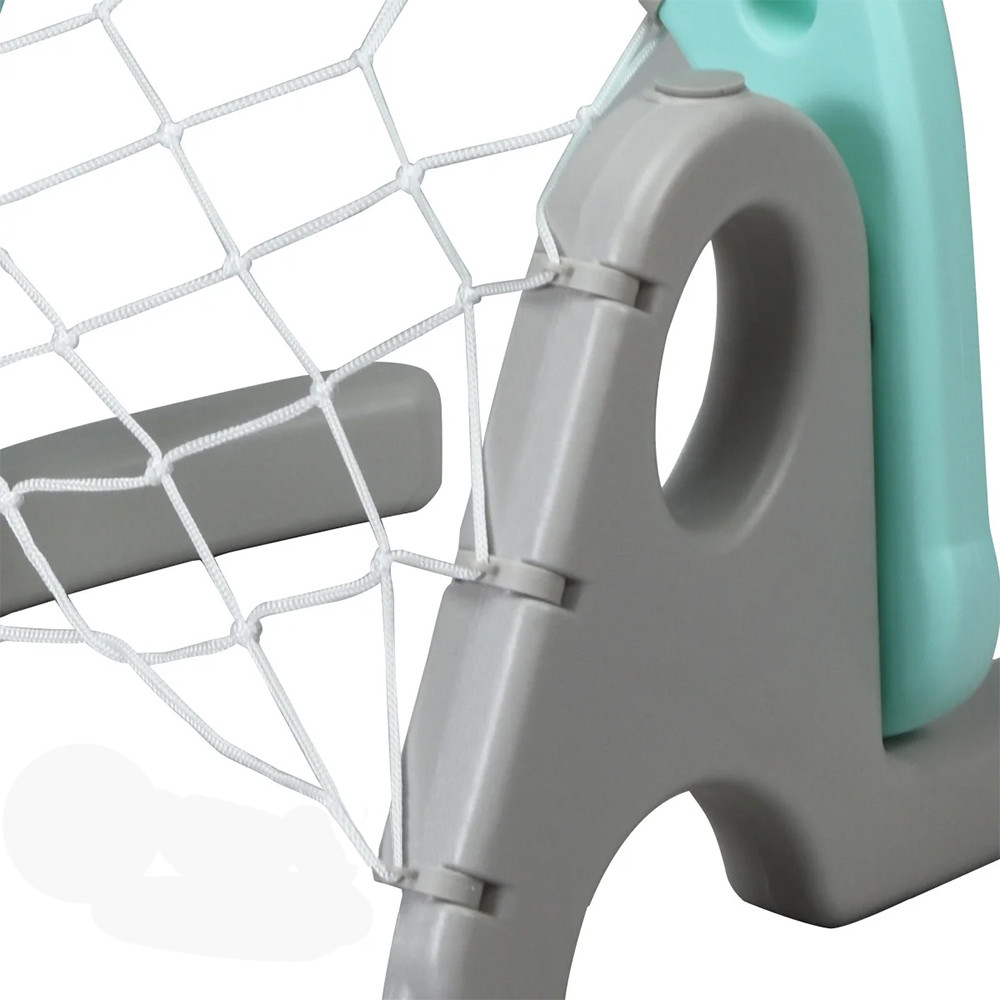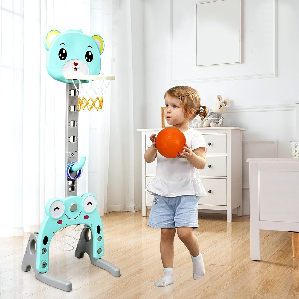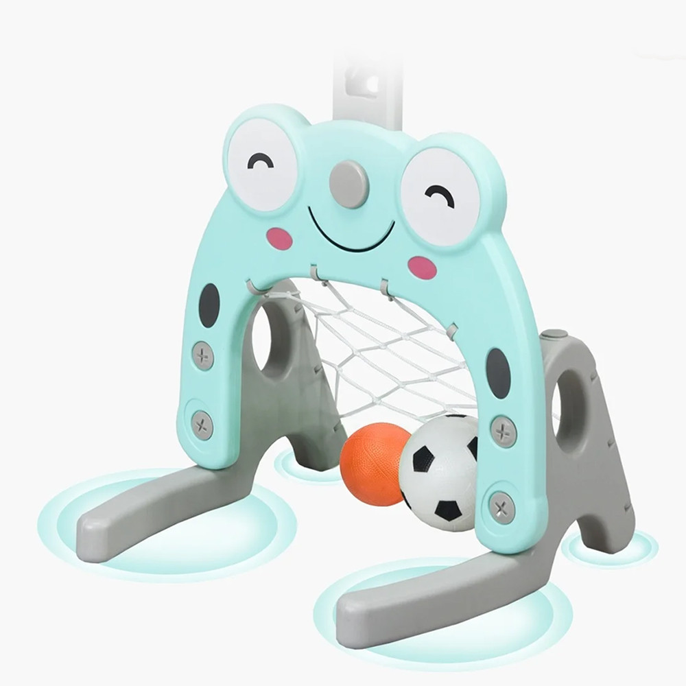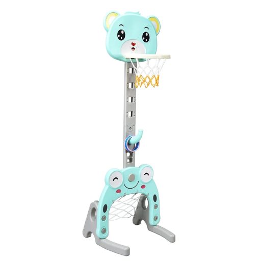 Tato sportovní hra 3v1 nabízí více druhů pohybu v jednom: střídá se basketbal, fotbal a házení kroužků. Pestré herní režimy pomáhají vybít energii a udrží dětský zájem po dlouhou dobu.