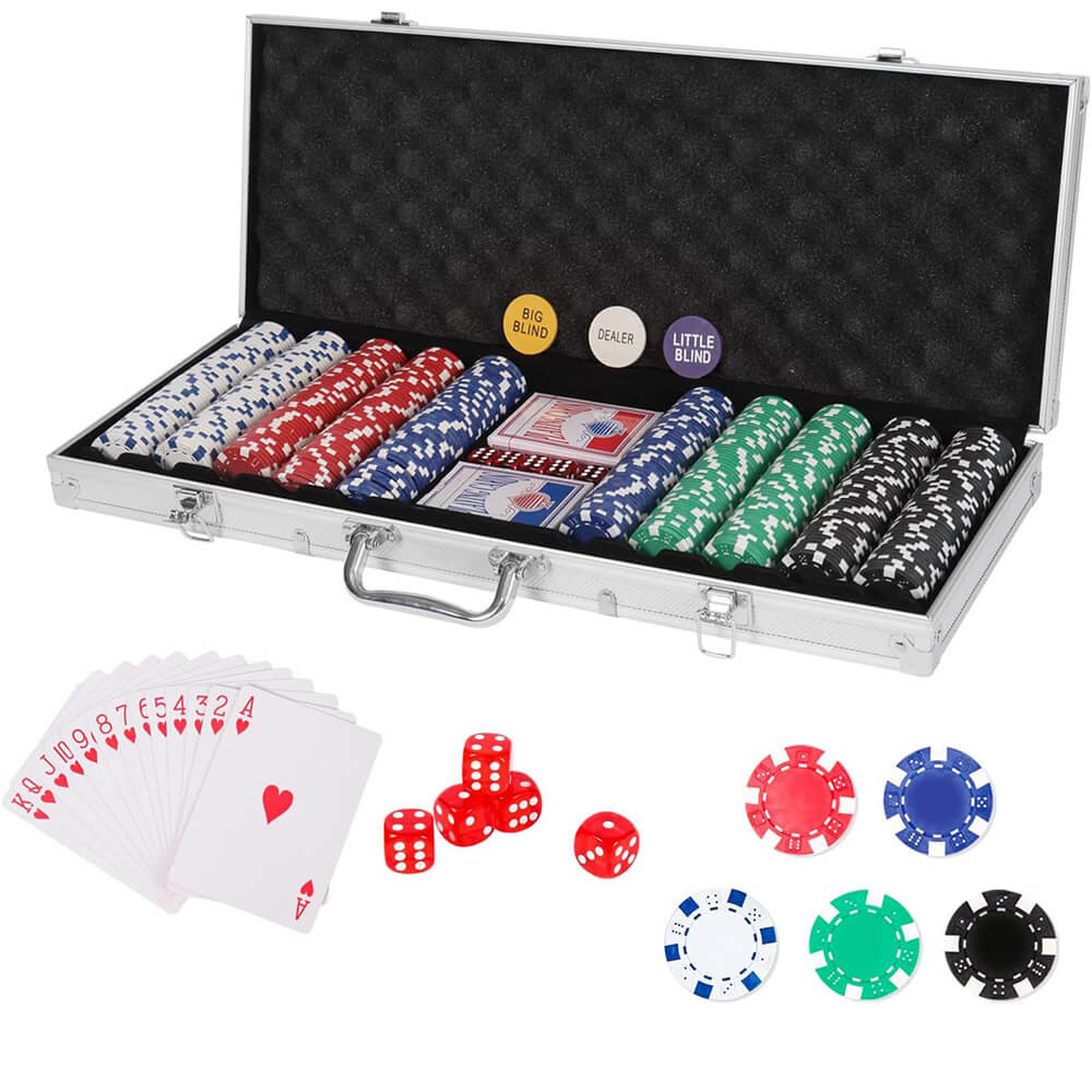 - 500 jetoane: roșu, albastru, alb, negru, verde