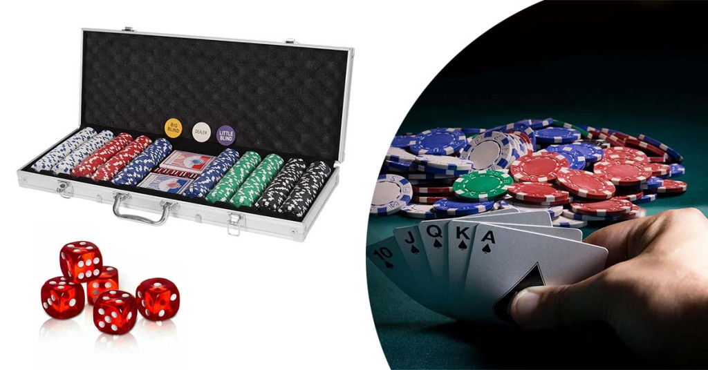 Setul include tot ce ai nevoie: pachete de cărți, jetoane, zaruri și accesorii pentru masa de poker.
