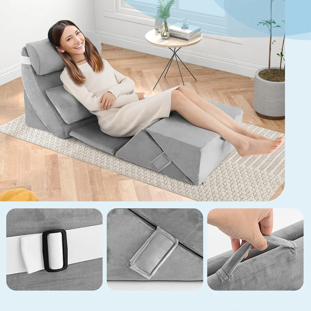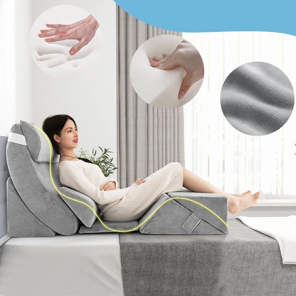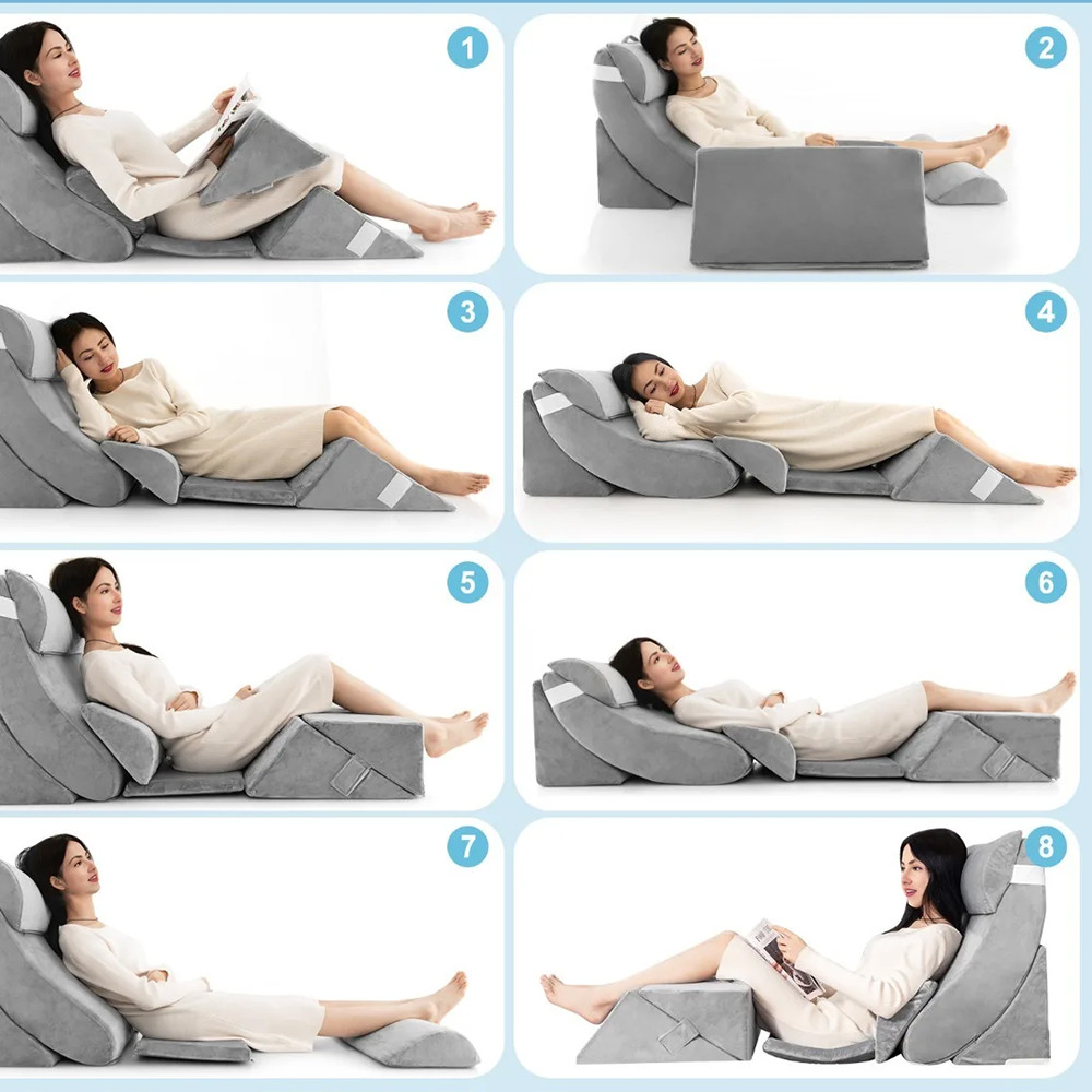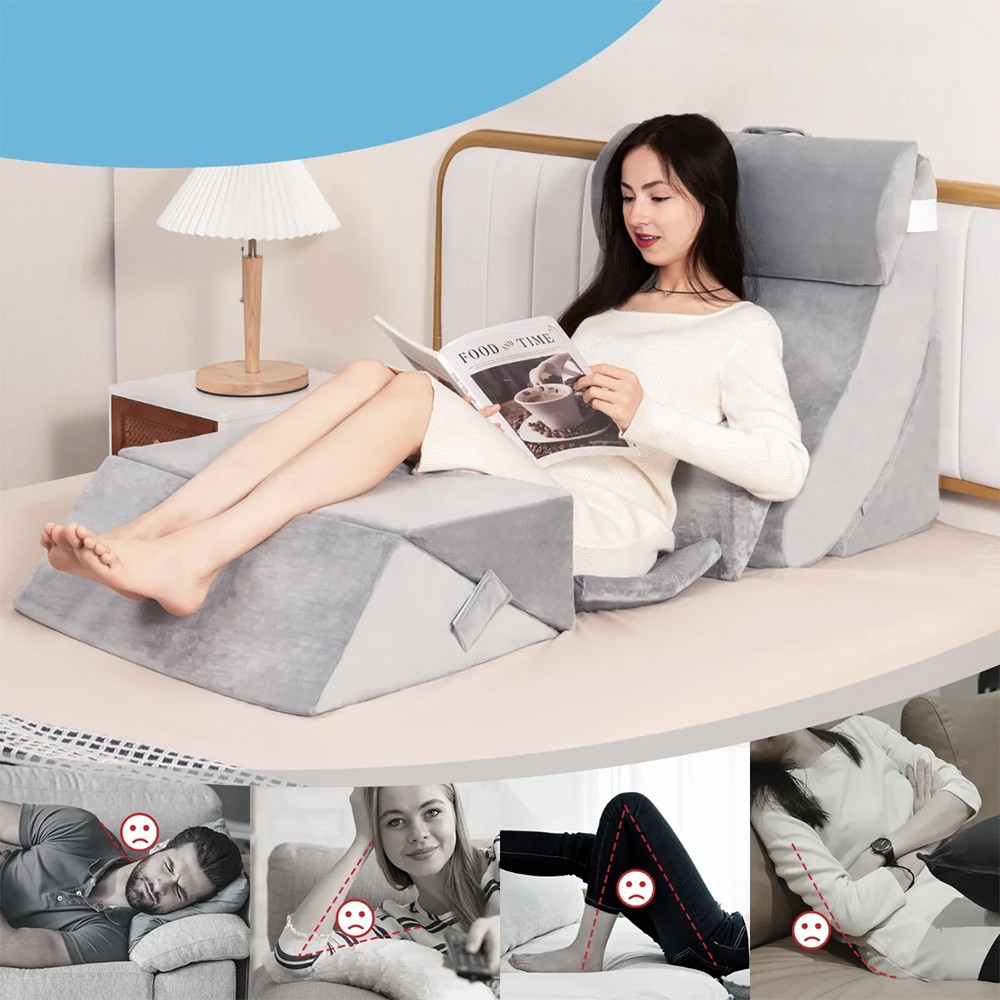 7-dielna klinová sada je navrhnutá tak, aby naraz správne podoprela viac častí tela. Pomáha telo nadvihnúť, podporuje správne držanie tela a znižuje tlak.