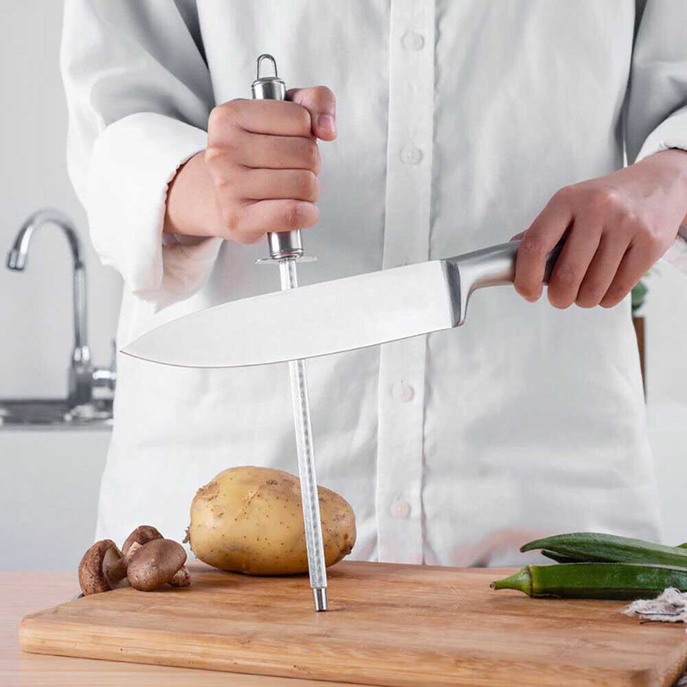 Ať už krájíte, loupete nebo sekáte, tato sada obsahuje vše potřebné – sekáček, nůž na chléb, krájecí, univerzální a loupací nůž, nůžky a brousek. Pohodlná rukojeť zajišťuje bezpečný a pevný úchop i při delší přípravě jídel.