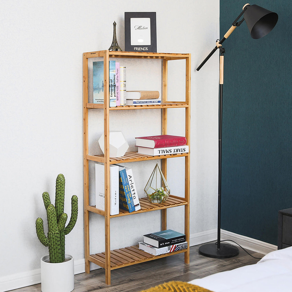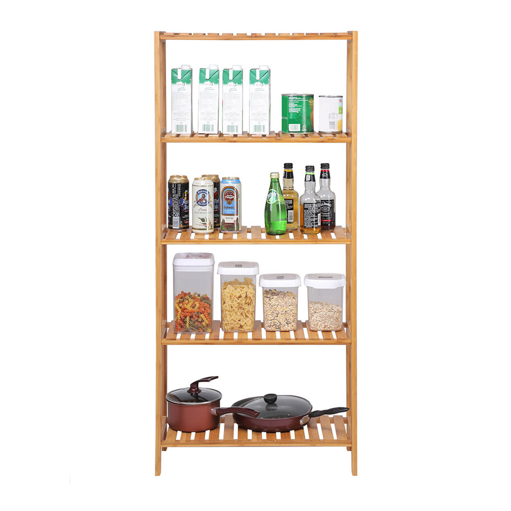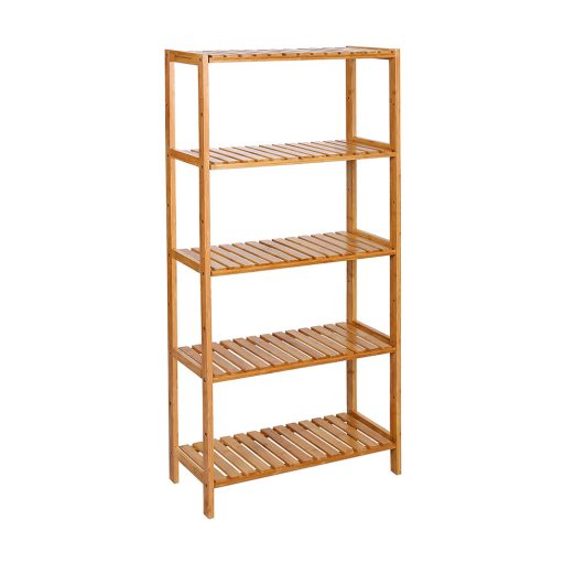Tento lehký bambusový regál v přírodním odstínu vnese do koupelny, kuchyně nebo na balkon útulnou atmosféru. Je ideální pro uložení knih, kosmetiky, květin nebo nádobí.
