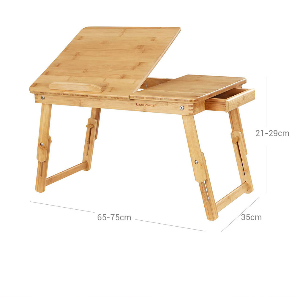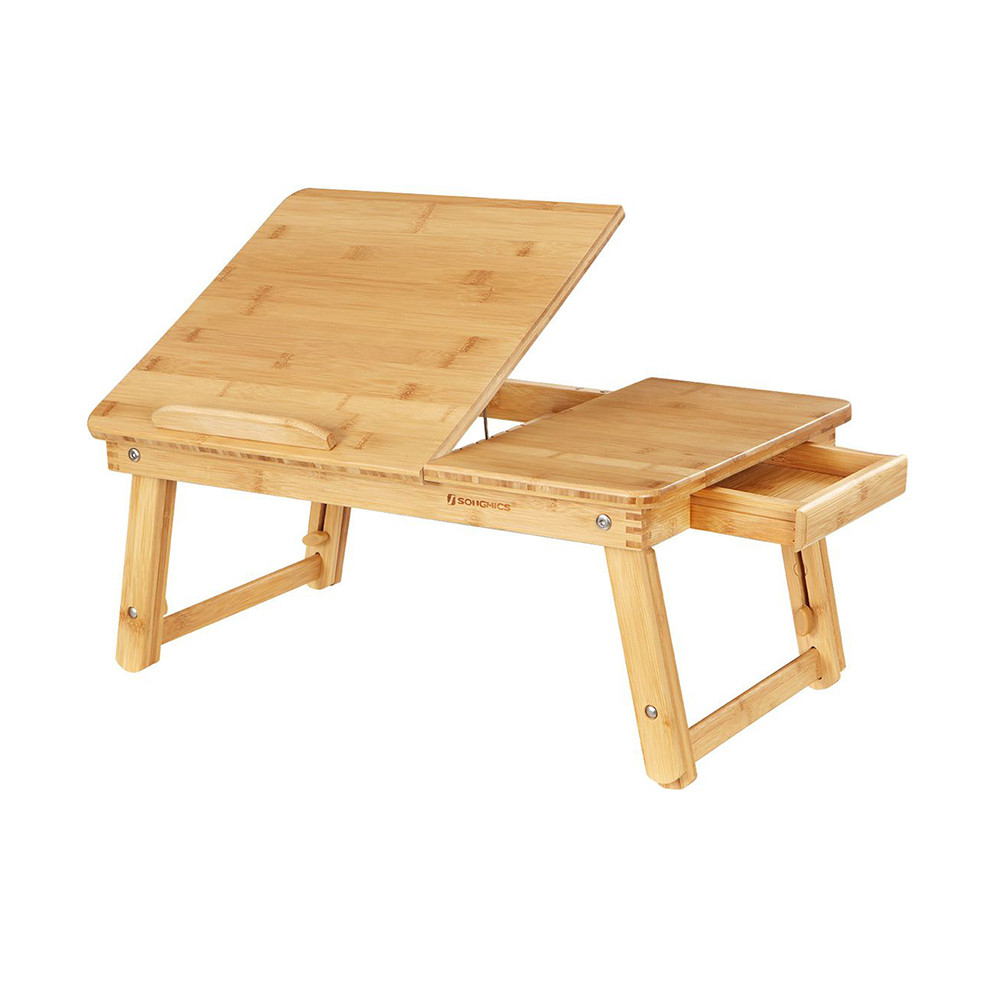 Tento stolek není ideální jen pro práci s laptopem: skvěle se hodí i na snídani, čtení knihy, psaní poznámek nebo kreslení. Malá výsuvná zásuvka poskytuje prostor pro drobnosti, jako jsou pera nebo poznámkové lístky.