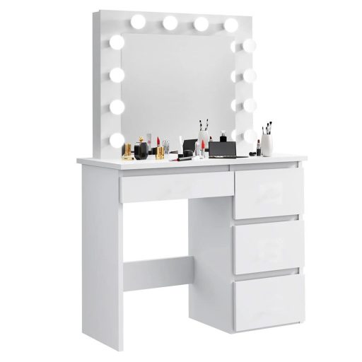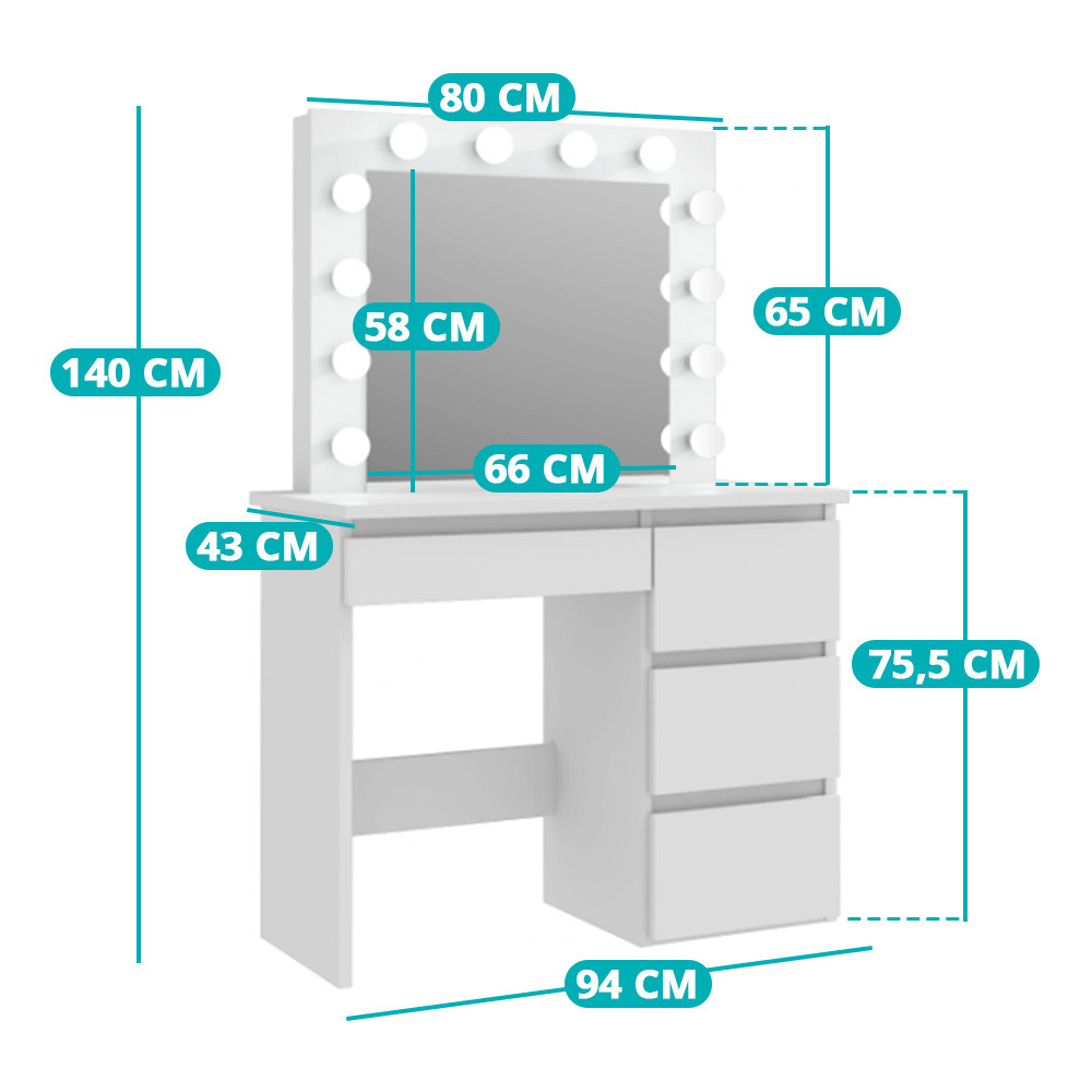 Čtyři prostorné zásuvky pojmou líčení, šperky i vlasové přípravky – vše budete mít po ruce. Čistý elegantní design se hodí do jakéhokoli interiéru.