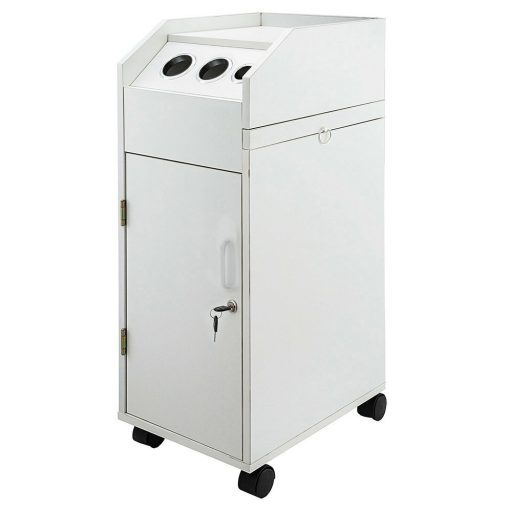 Kosmetický vozík je vybaven uzamykatelnými dvířky, které poskytují bezpečné místo pro cenné nástroje a potřeby. Zásuvky lze snadno vyjmout a vrátit zpět, což umožňuje přehlednou organizaci a rychlý přístup k vybavení. Vnitřní úložné prostory jsou hluboké a prostorné, což zajišťuje maximální pořádek.