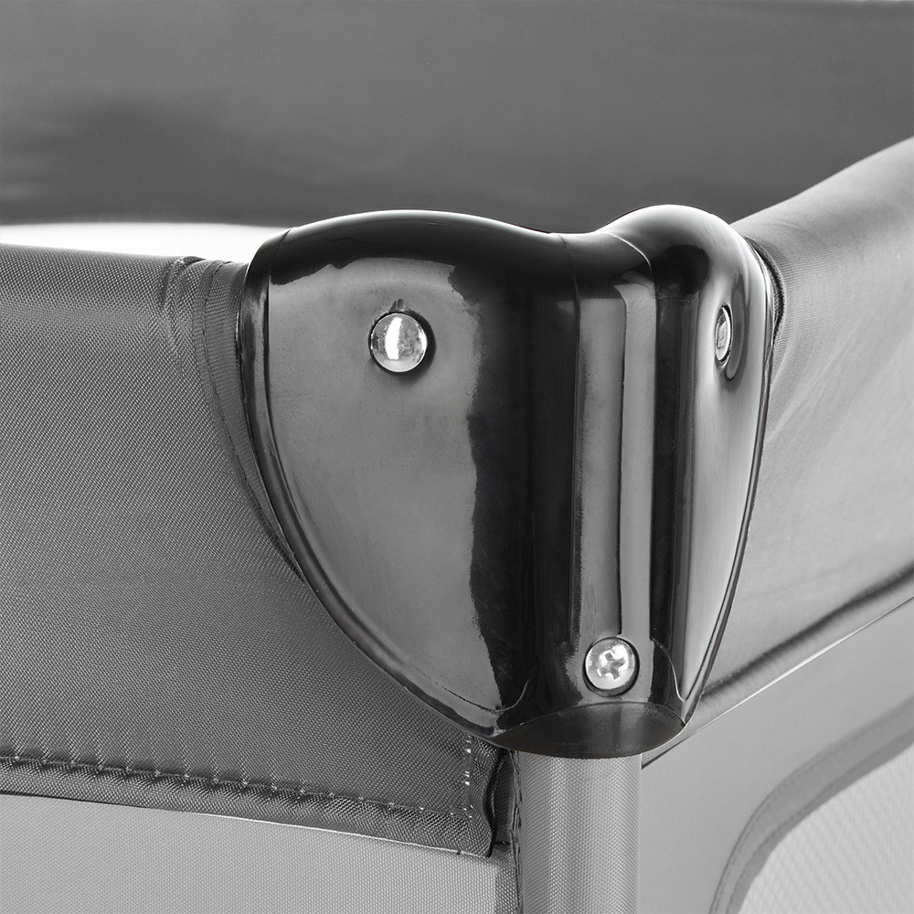 Postýlka je vybavena zipovým vchodem, který větším dětem umožňuje samostatný přístup, což podporuje jejich nezávislost a rozvoj pohybových schopností. Dvě kolečka s brzdou zajišťují stabilitu a snadnou manipulaci, takže postýlku lze jednoduše přesouvat po domácnosti. Odolné síťované stěny zajišťují optimální ventilaci a umožňují rodičům snadno sledovat dítě.