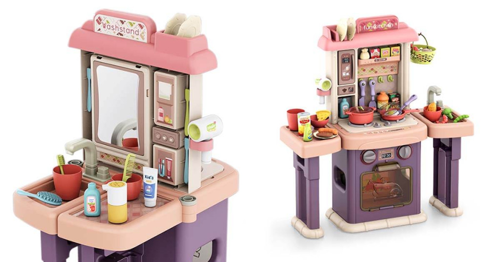 Část kuchyňky obsahuje množství příslušenství, jako jsou napodobeniny potravin, nádobí a příbory, které dětem umožňují vytvářet vlastní příběhy. Koupelnové doplňky – například hračka ve tvaru fénu nebo zubní kartáček – napomáhají zábavnou formou rozvíjet pozitivní hygienické návyky.