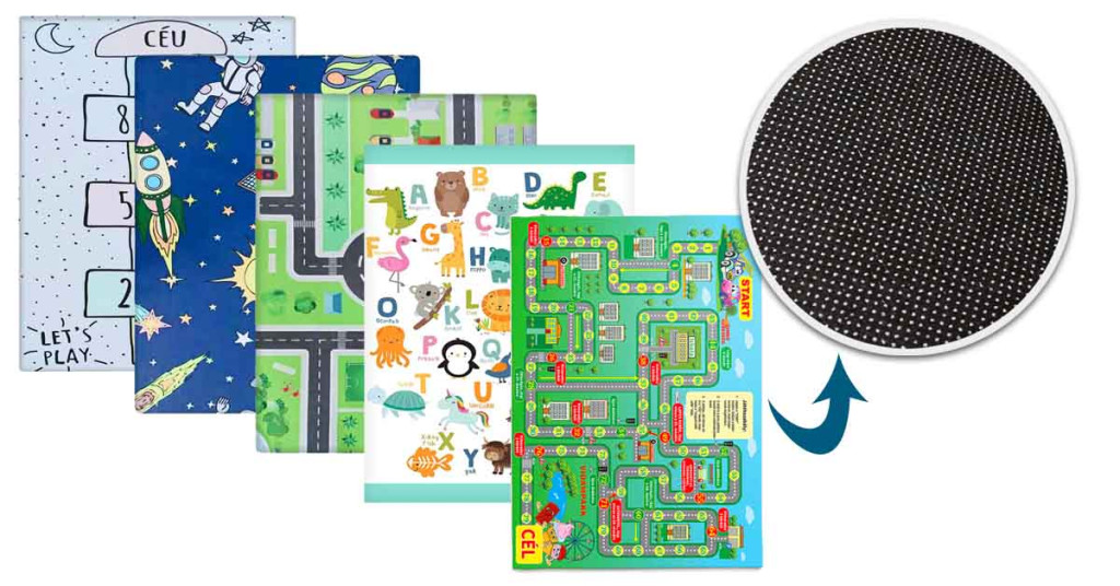 Různé vzory – například skákací panák, dopravní cesta, abeceda se zvířátky nebo společenské hry – podporují dětskou koordinaci, kreativitu a logické myšlení. Česká písmena a motivy pomáhají při přípravě na čtení a psaní, takže koberec má nejen zábavnou, ale i vzdělávací funkci.