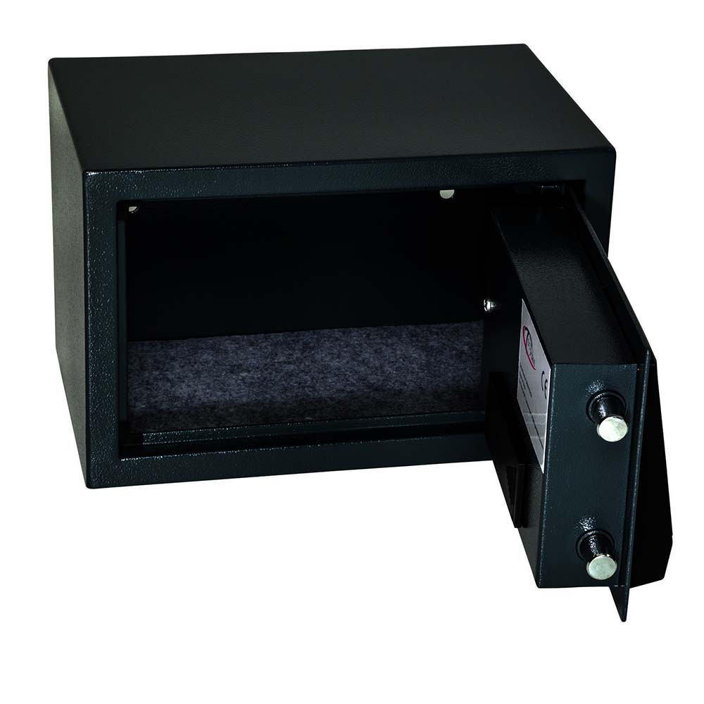 Tato kompaktní bezpečnostní schránka je výbornou volbou pro ochranu cenností doma, v kanceláři nebo v prodejně. Otevírá se pomocí PIN kódu nebo klíče a díky možnosti přišroubování ji lze bezpečně připevnit k podlaze či stěně.