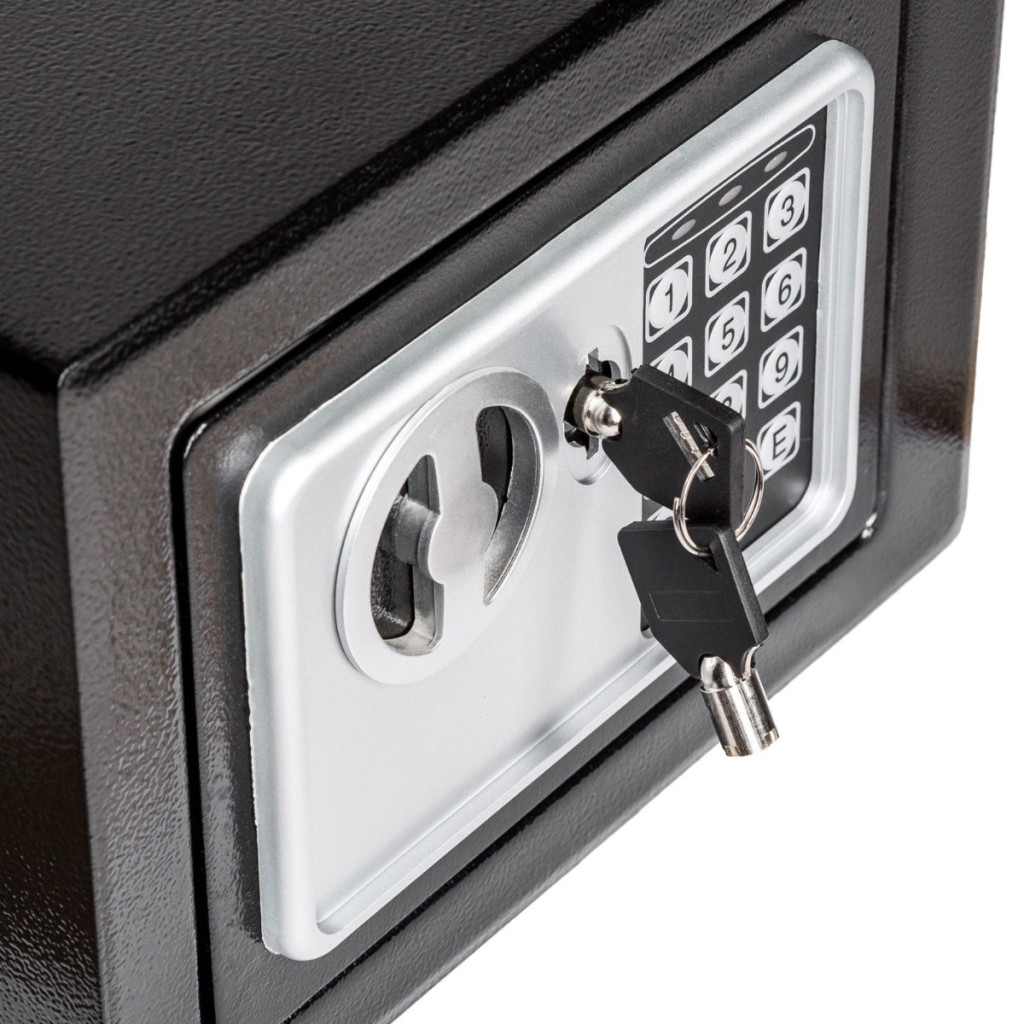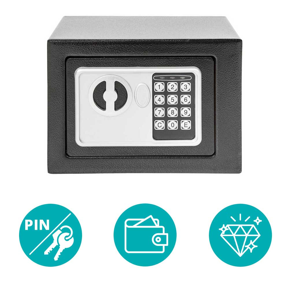 Tato digitální bezpečnostní schránka je ideální pro menší cennosti, šperky, dokumenty nebo hotovost. Skvěle se hodí pro domácí, kancelářské i firemní využití.