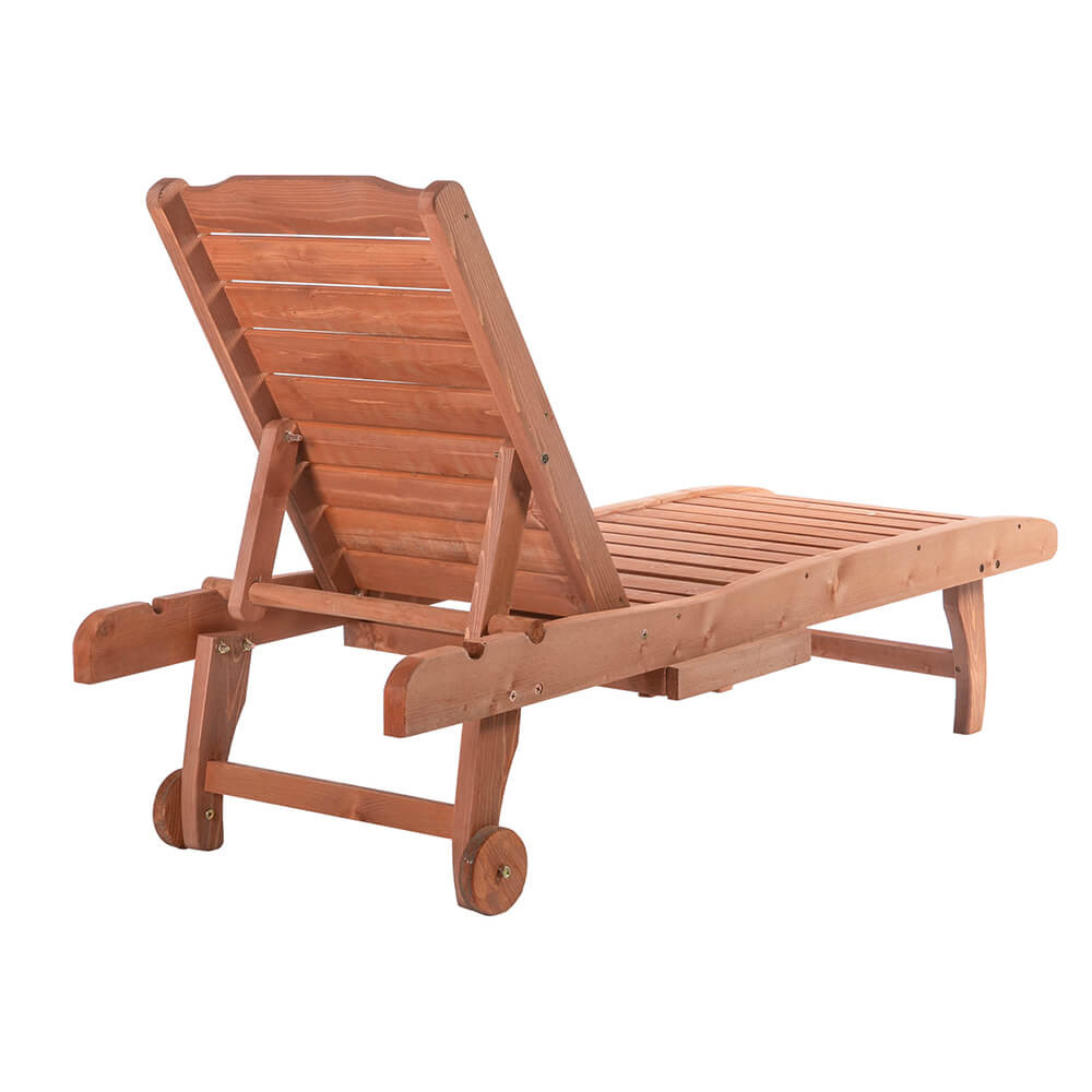 Dřevěné lehátko s přírodním vzhledem skvěle zapadne do každého venkovního prostředí. Středomořský design vytváří klidnou a harmonickou atmosféru na terase nebo na trávníku – ideální pro opalování či odpolední relaxaci.
