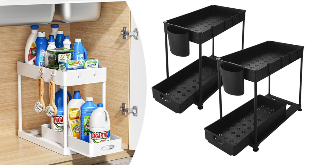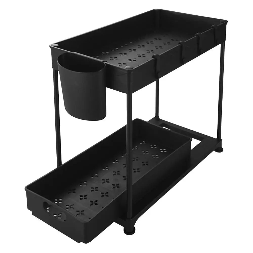 Dvouúrovňový organizér je ideálním řešením tam, kde je málo místa a hodně věcí k uskladnění. Umístěte ho pod dřez nebo na polici – prakticky uspořádá nádobí, čisticí prostředky nebo koupelnové doplňky.