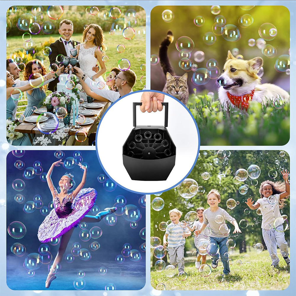 Bublinky vytvářejí kouzelnou atmosféru, která se skvěle hodí pro focení, natáčení videí nebo prostě jen pro radost z okamžiku. Díky nepřetržitému bublinkovému efektu si děti i dospělí užijí nezapomenutelnou zábavu.