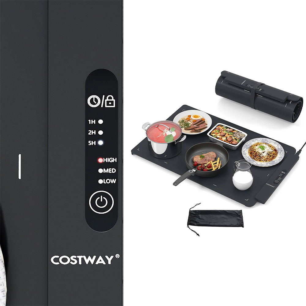 Měkký, tepelně odolný silikon je odolný, snadno se čistí a je zároveň pružný – ohřívací podložku tak jednoduše sroluješ. Díky přiložené tašce ji vezmeš kamkoliv, ať už na rodinný oběd nebo venkovní akci.