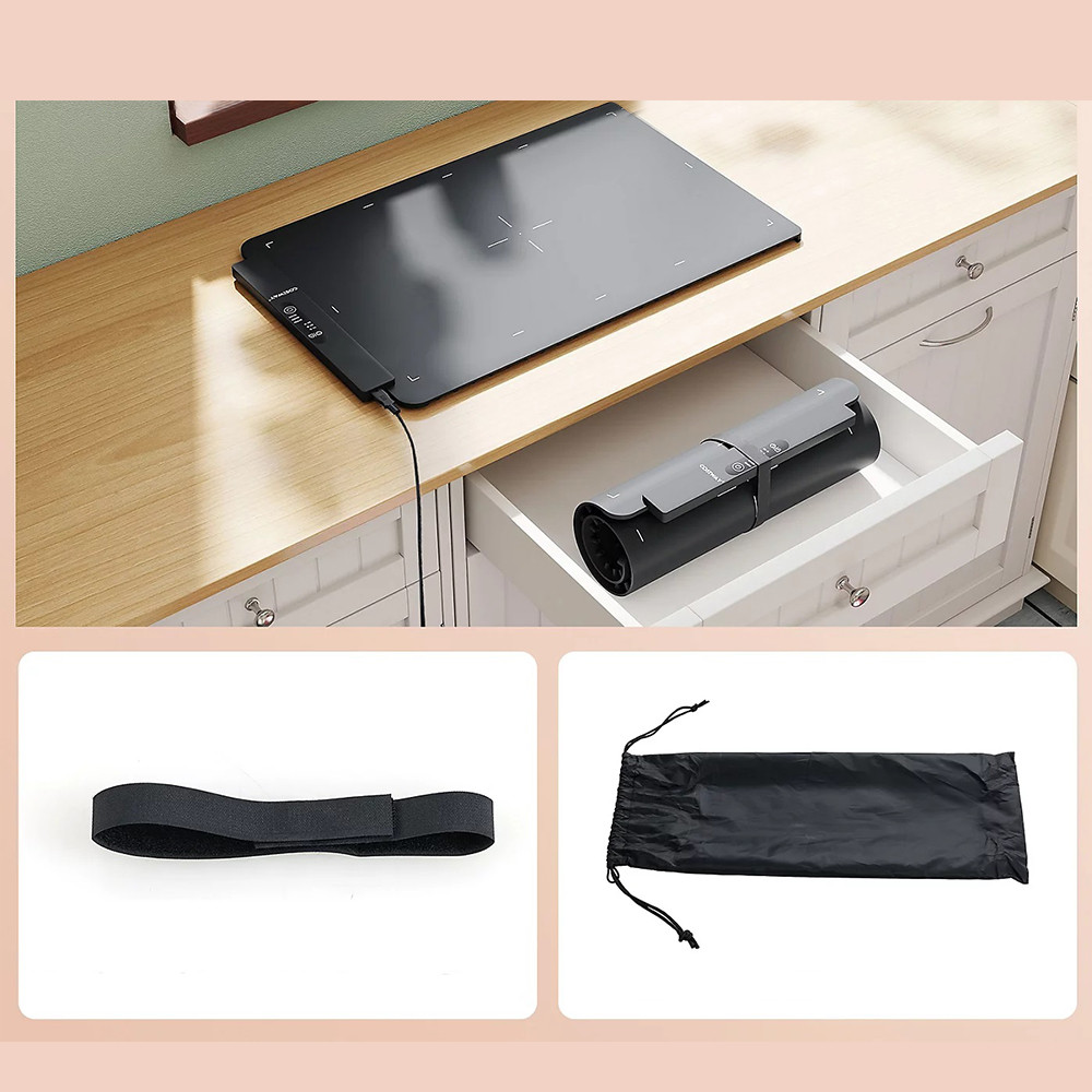 Moderní černý silikon vypadá skvěle v každém prostředí a podložka je nejen užitečná, ale i estetickým doplňkem stolu. Kompaktní design a praktické upevnění na suchý zip usnadňují přenášení i skladování.