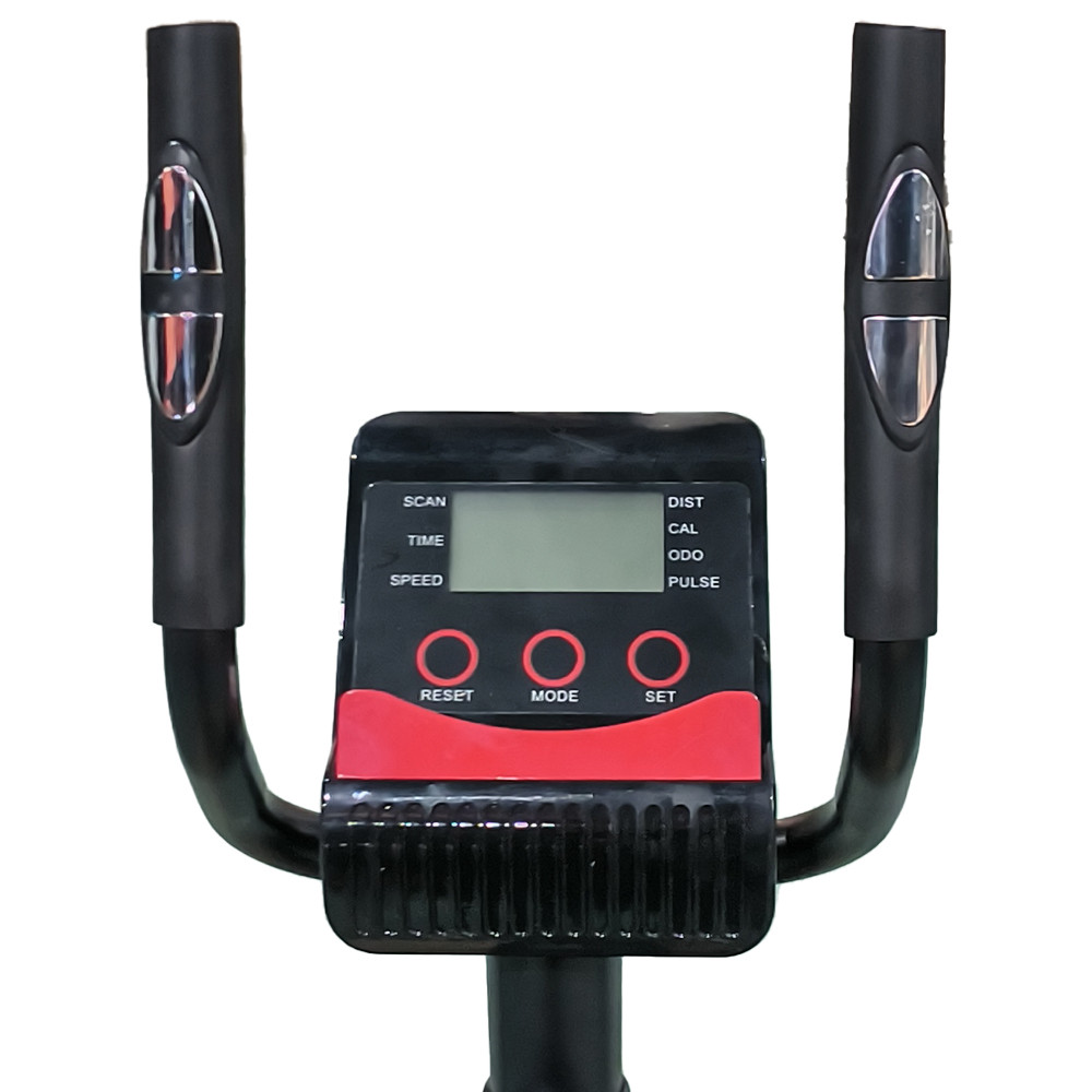Trenažér s nosností 100 kg má pevný rám pro stabilitu během cvičení. Displej funguje na 2 AAA baterie (nejsou součástí), což zajišťuje jednoduché ovládání.