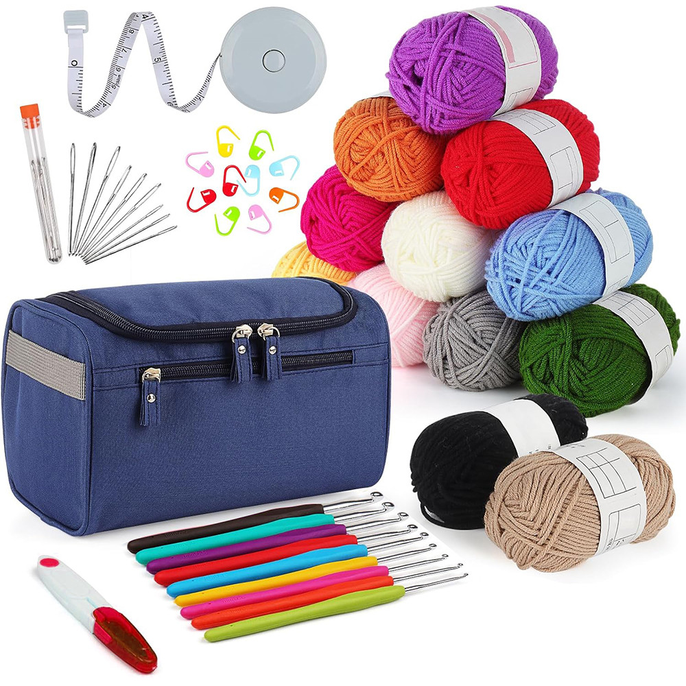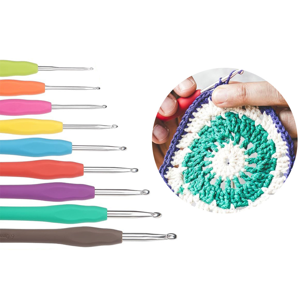 Sada obsahuje 12 háčků různých velikostí, příze, nůžky, označovače ok a šicí doplňky. Háčky mají ergonomické rukojeti, které zajišťují pohodlné a bezpečné používání i při delším háčkování.