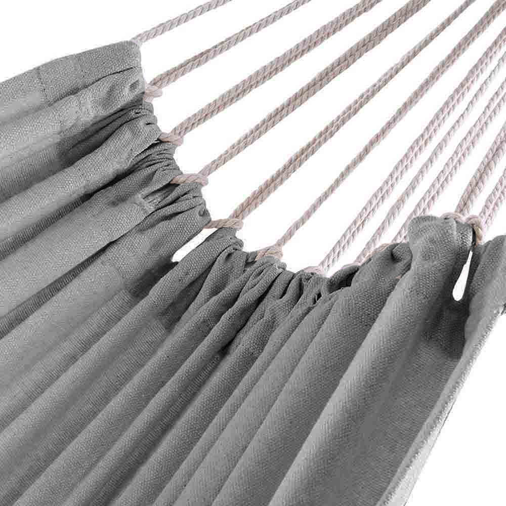 Dvojmístná houpací síť je perfektní volba na zahradu, terasu i do interiéru. Lze ji bezpečně upevnit ke stromu nebo sloupu a rychle si vytvoříte svůj koutek klidu kdekoli.