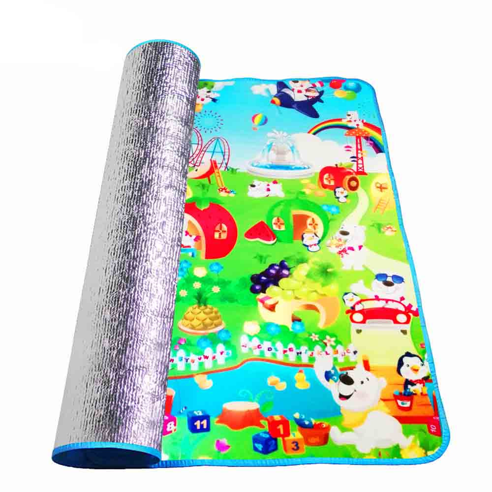 Podložka je vhodná pro použití uvnitř i venku, takže ji lze využít nejen v dětském pokoji nebo obýváku, ale i na zahradě či během pikniku. Tepelně izolační a voděodolné vlastnosti hliníkové vrstvy zabraňují pronikání chladu a vlhkosti, což zajišťuje pohodlné hraní kdekoliv. Protiskluzový povrch poskytuje stabilní základnu, která snižuje riziko uklouznutí a činí hraní ještě bezpečnějším.