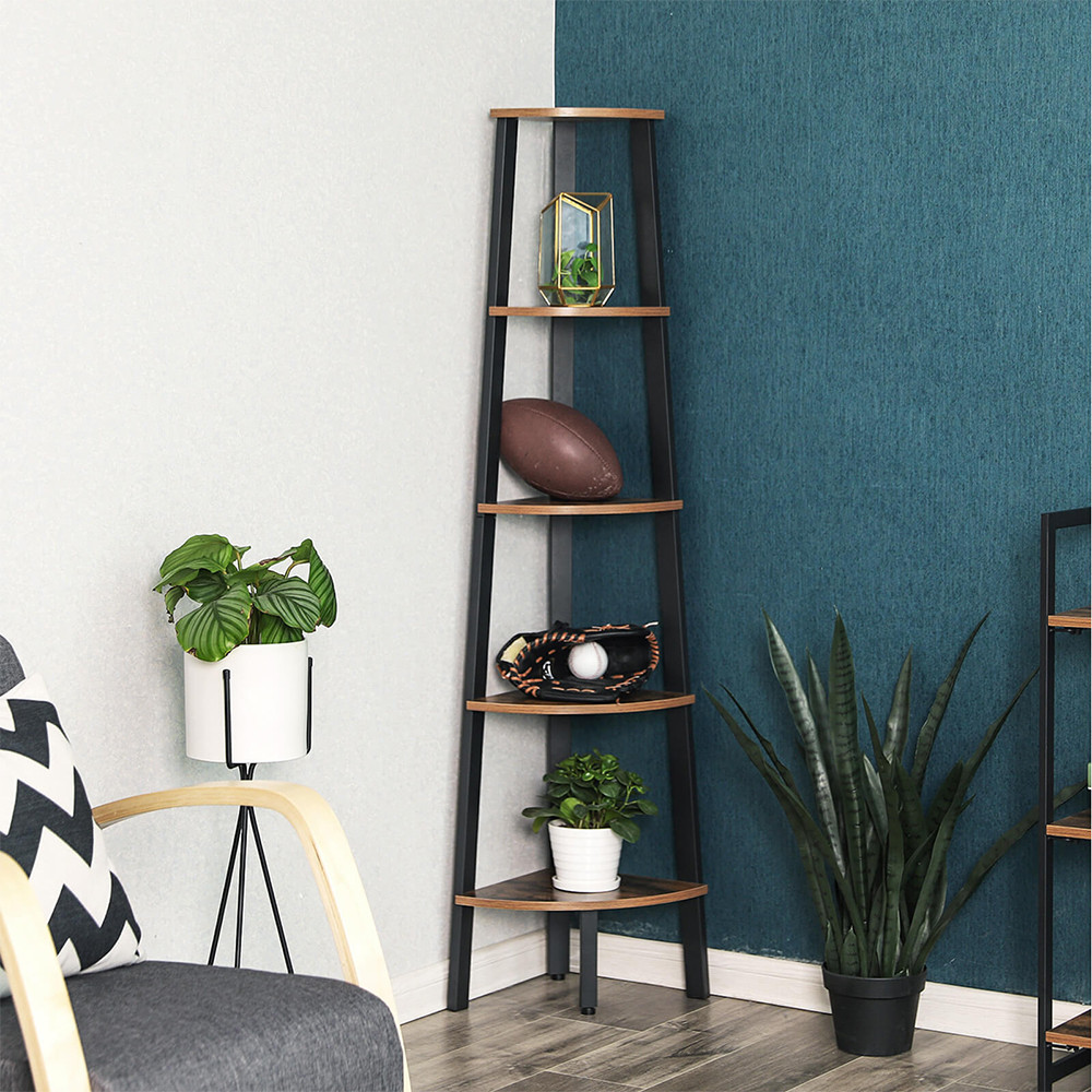 Stupňovitě uspořádaná konstrukce s 5 policemi umožňuje přehledně umístit knihy, rostliny, dekorace nebo osobní předměty. Vysoký a úzký tvar nabízí dostatek úložného prostoru i na malé ploše.