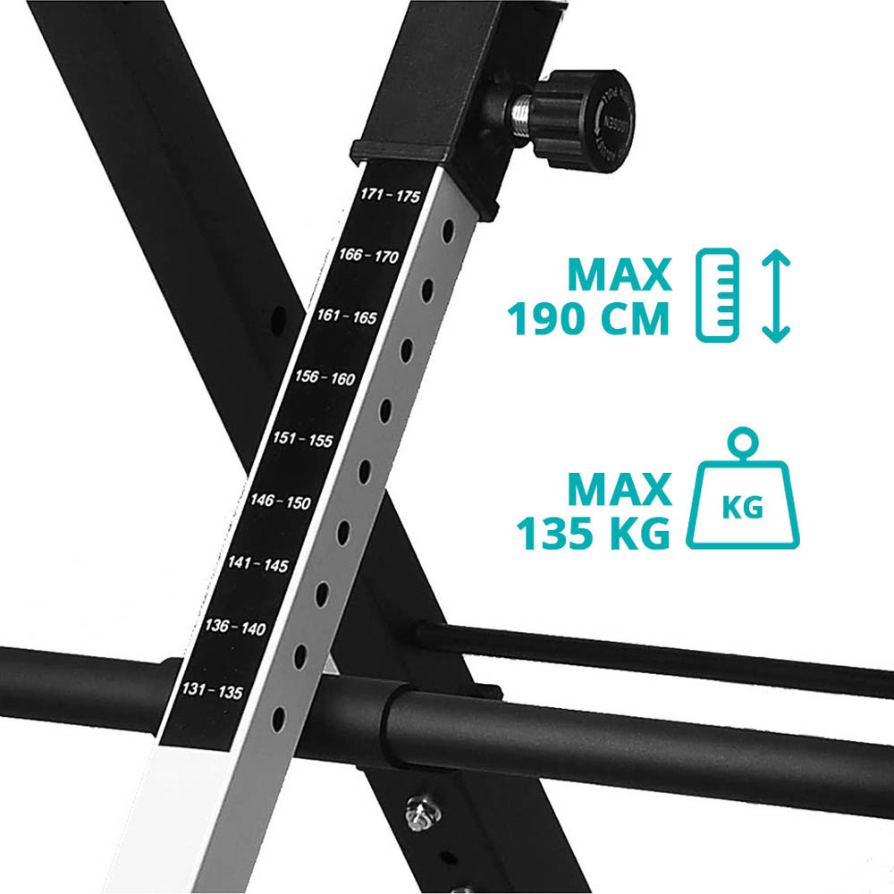 Stabilní konstrukce unese až 135 kg a je snadno sestavitelná. Lehká plocha má rozměry 69×39 cm, výška celé lavičky je 155 cm. Díky skládacímu provedení je i uskladnění velmi snadné. Nepoužívejte, pokud vám to zdravotní stav neumožňuje – před použitím se poraďte s lékařem!