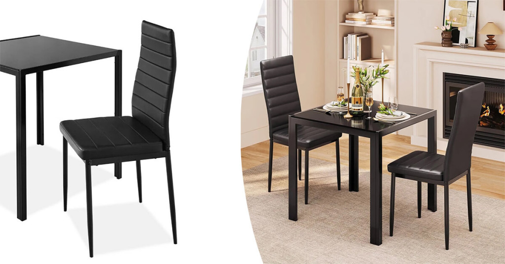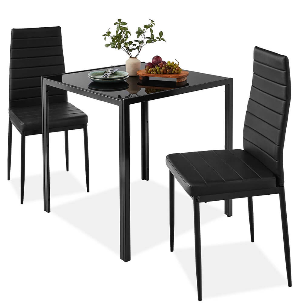 Dodejte svému jídelnímu prostoru eleganci a moderní vzhled s touto dvoumístnou jídelní sestavou. Průhledný skleněný stůl svým čistým designem opticky zvětšuje prostor, zatímco dvě pohodlné židle zaručují příjemné posezení. Ideální volba do menších bytů, moderních interiérů nebo úsporných jídelních koutů.