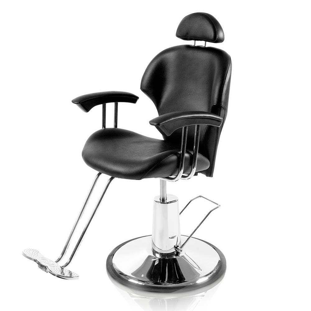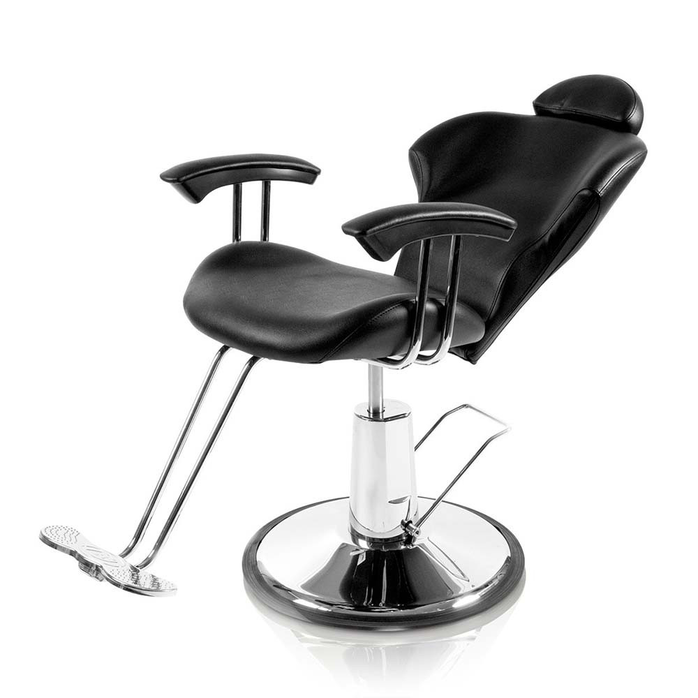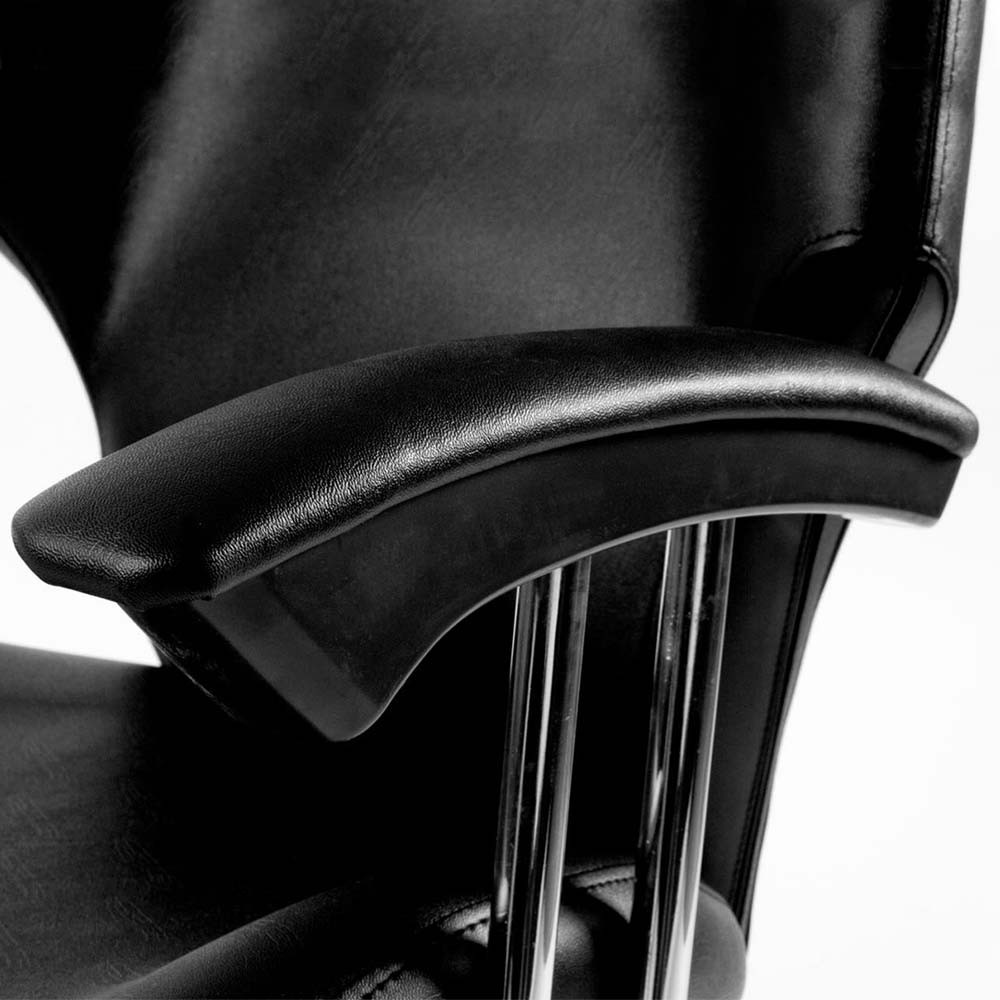 Čalounění z černé umělé kůže zajišťuje elegantní vzhled a snadnou údržbu. Skvěle zapadne do moderních barber a kadeřnických salonů.