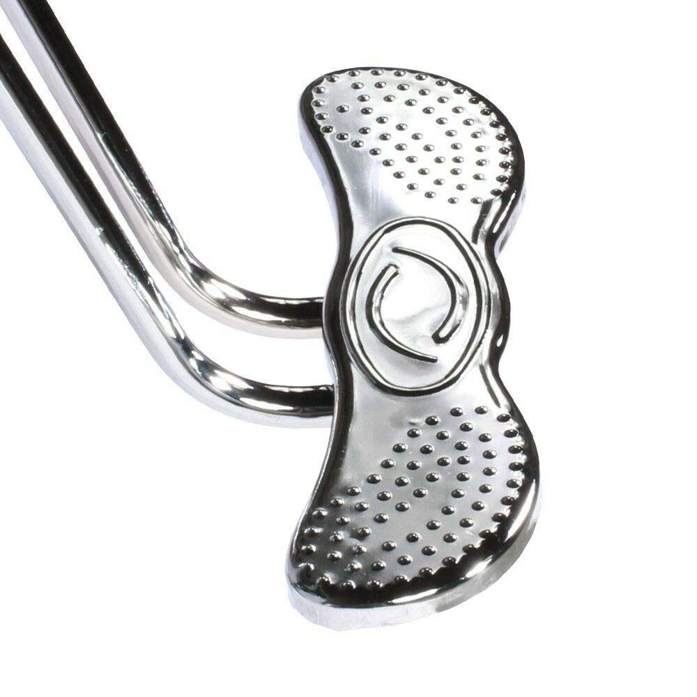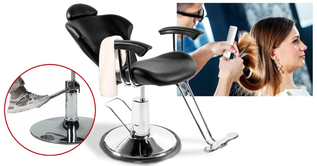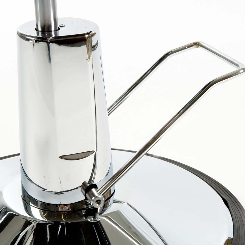 Područky a opěrka nohou zvyšují pohodlí klienta, zatímco kruhový kovový podstavec zaručuje stabilitu. Nastavitelná výška a rozměry umožňují individuální přizpůsobení.