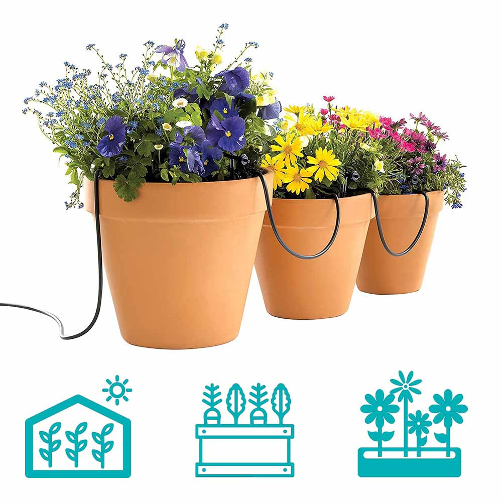 Ať už jde o skleník, zeleninovou zahrádku nebo květinový záhon, tento kapkovací systém lze použít v různých prostředích. Dokonce i ty nejcitlivější rostliny dostanou potřebnou závlahu bez rizika přelévání.