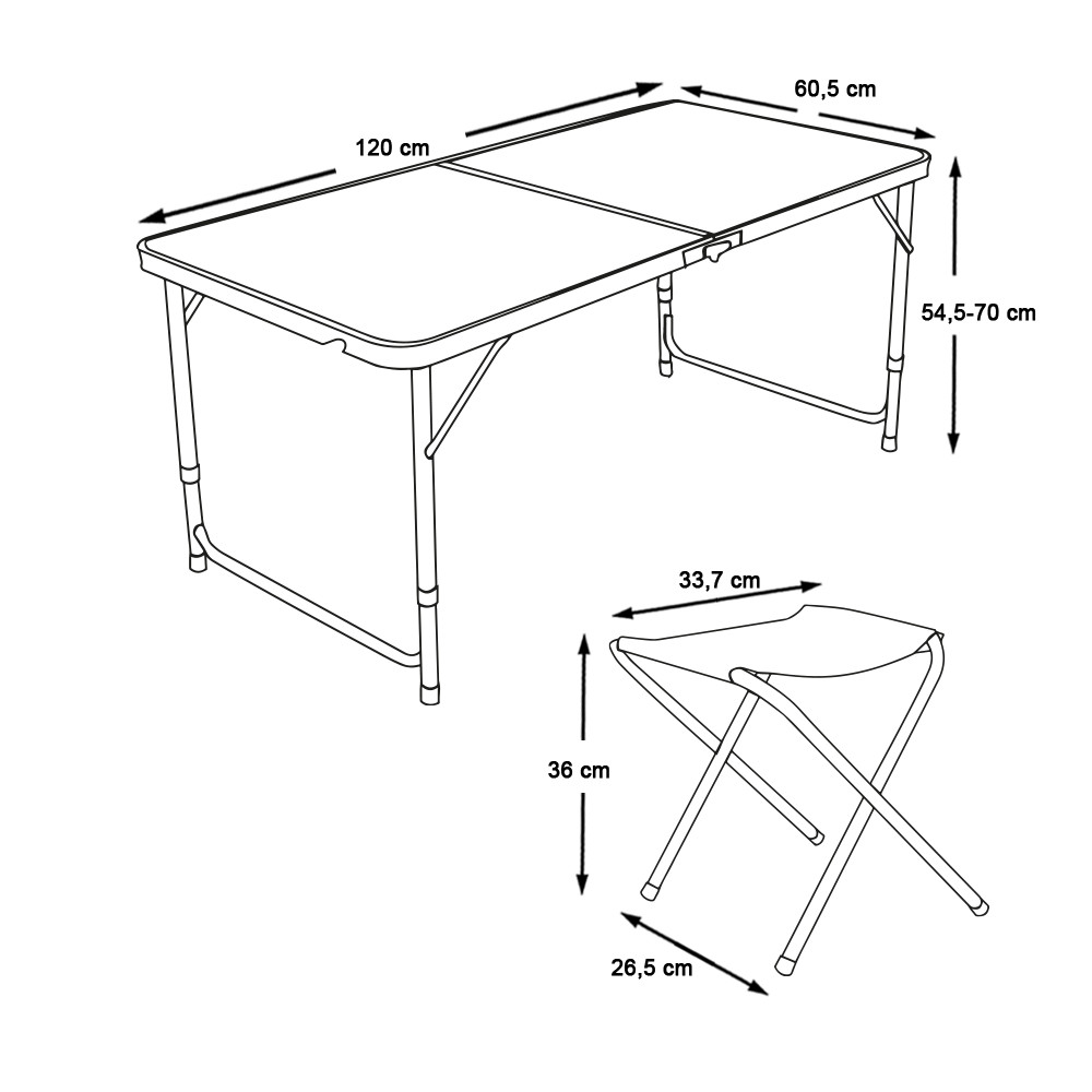Ať už jde o piknik, zahradní party nebo kempování, tato sada se rychle rozloží a nabídne pohodlné sezení až pro čtyři osoby. Díky odolné konstrukci bude spolehlivým společníkem na dlouhou dobu.