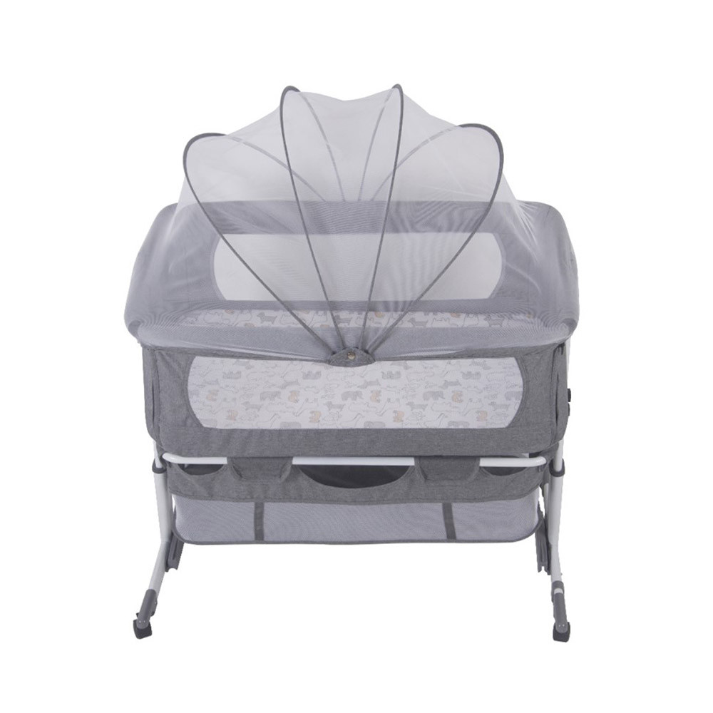 S přenosnou taškou je postýlka snadno přenosná, což z ní činí ideálního společníka na delší cesty. Spodní úložný prostor poskytuje dostatek místa pro nezbytnosti, jako jsou pleny či vlhčené ubrousky.