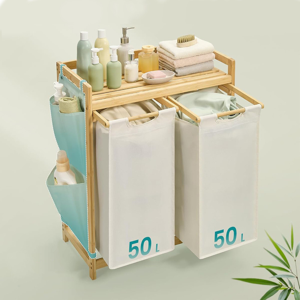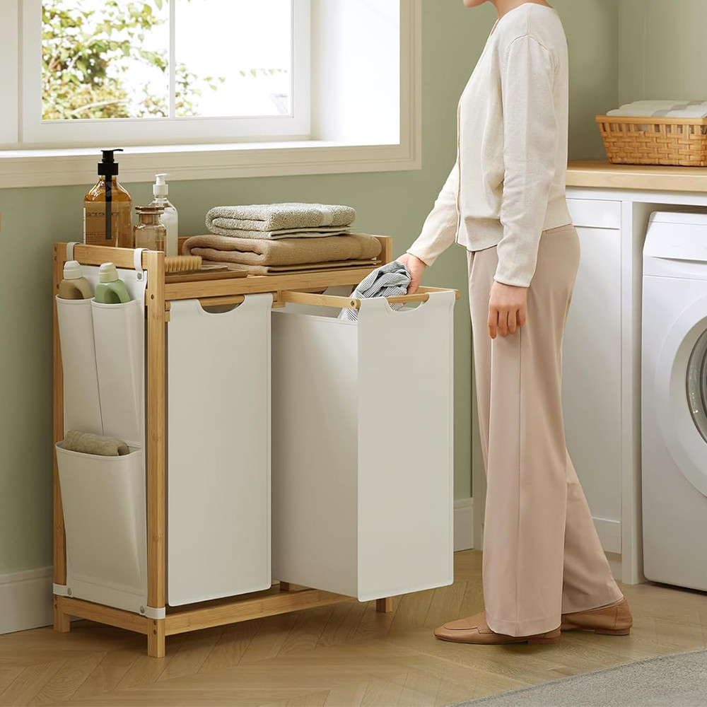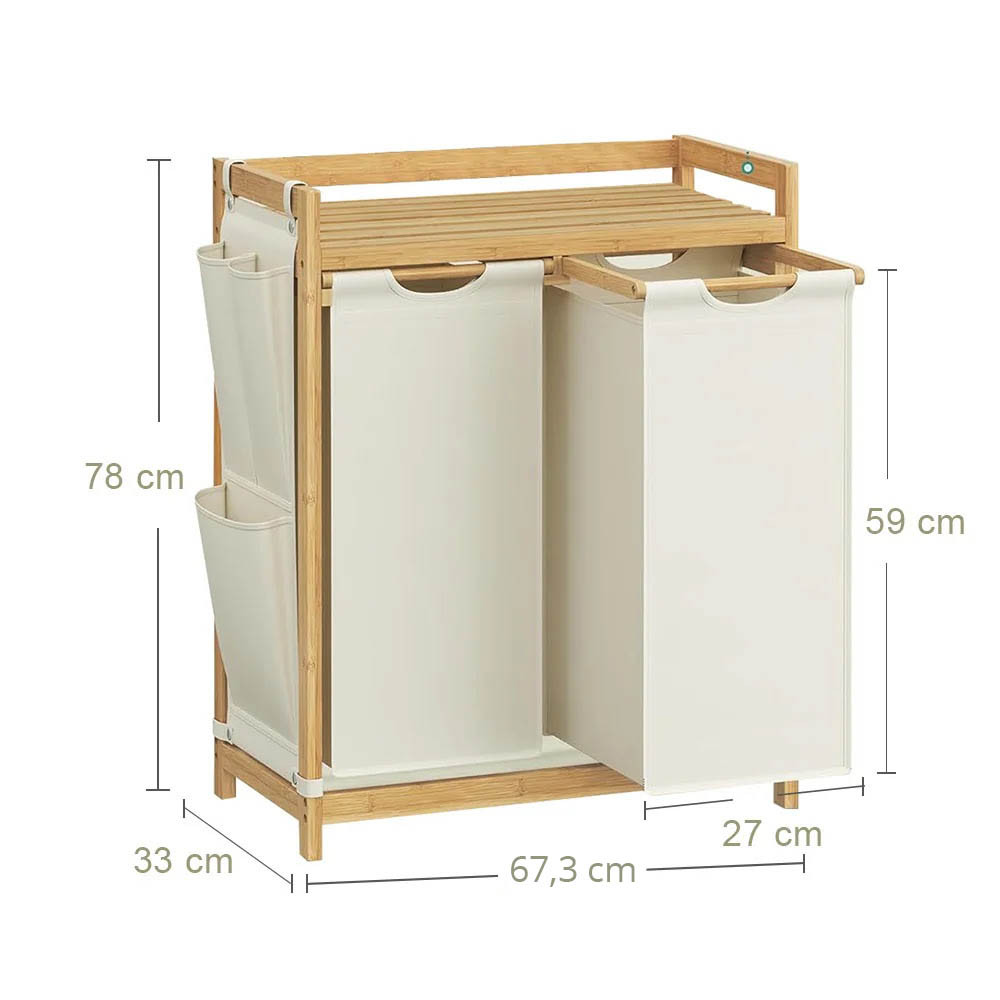 Koš na prádlo se dvěma 50litrovými přihrádkami pomáhá rychle roztřídit světlé a tmavé oblečení. Snadno přístupné vnitřní prostory zajišťují praktickou organizaci v každodenním životě.