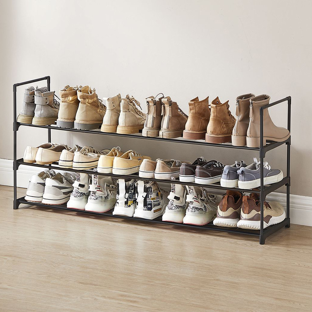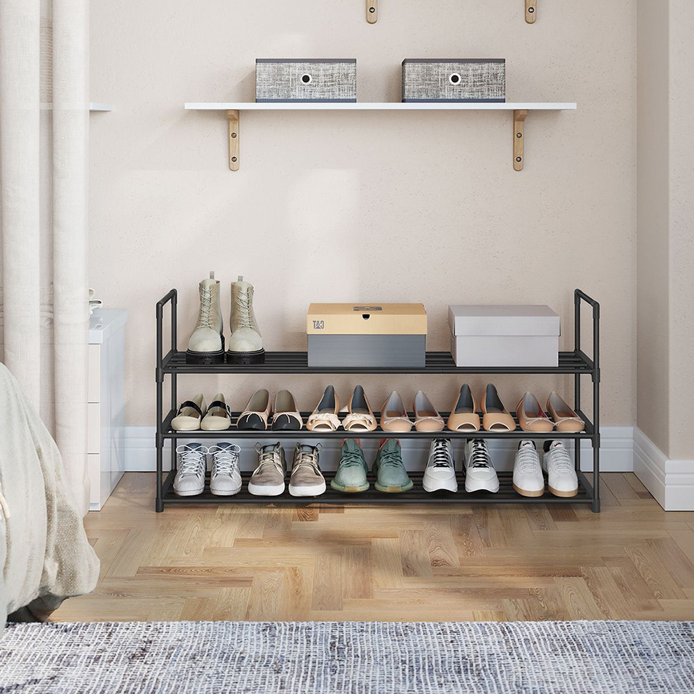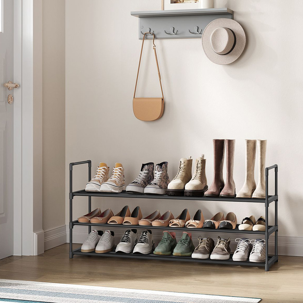 Tento třípatrový botník pojme až 18 párů bot, takže budeš mít svou obuv vždy přehledně uspořádanou. Díky kompaktním rozměrům (116 × 30 × 55 cm) se vejde i do menších prostor, přičemž poskytuje dostatek úložného místa.