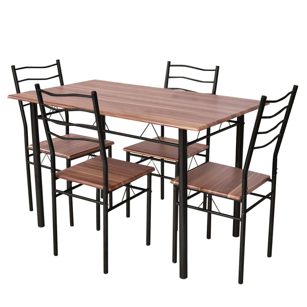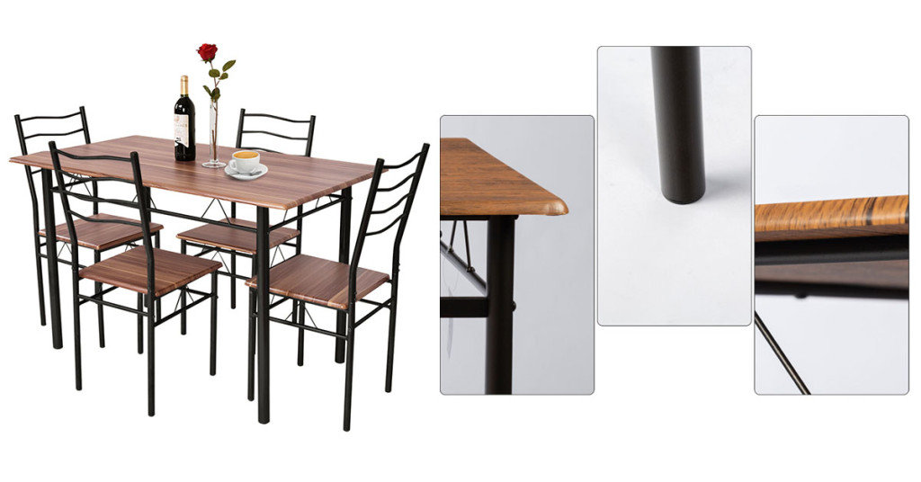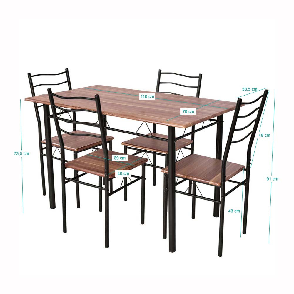 Černý kovový rám dodává nábytku elegantní industriální vzhled, zatímco dřevěná deska stolu vyzařuje příjemnou hřejivost. Stůl je ideální jak do menších, tak větších prostor, ať už jde o domácí jídelnu, kavárnu nebo restauraci. Díky odolným materiálům si sestava dlouhodobě zachovává svůj vzhled i kvalitu.
