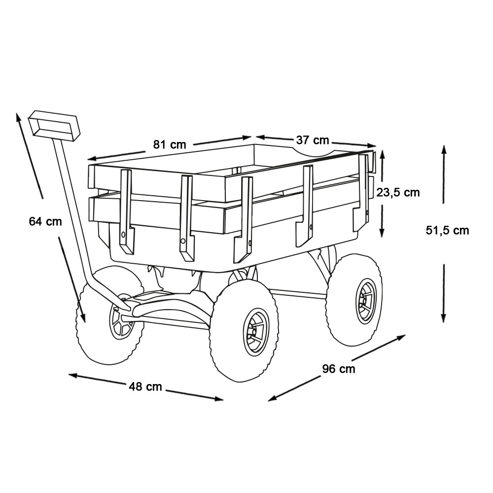 Tento táhnutelný vozík usnadňuje přesun těžkých věcí – rostlin, nářadí nebo zahradního odpadu. Kompaktní a pevná konstrukce je vhodná pro použití doma, na zahradě i ve skladu.