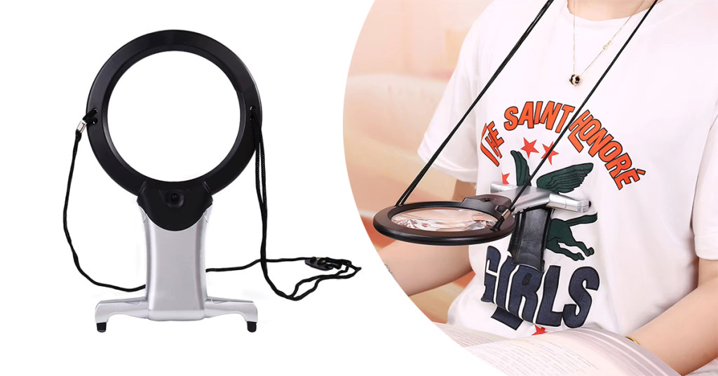 Díky designu na zavěšení kolem krku a stabilnímu, skládacímu stojanu je možné používat lupu bez potřeby držení, což ji činí ideální pro ruční práce, vyšívání, modelování nebo jiné hobby činnosti. Díky rovnoměrnému rozložení hmotnosti a měkkému řemínku je i při delším používání pohodlná.