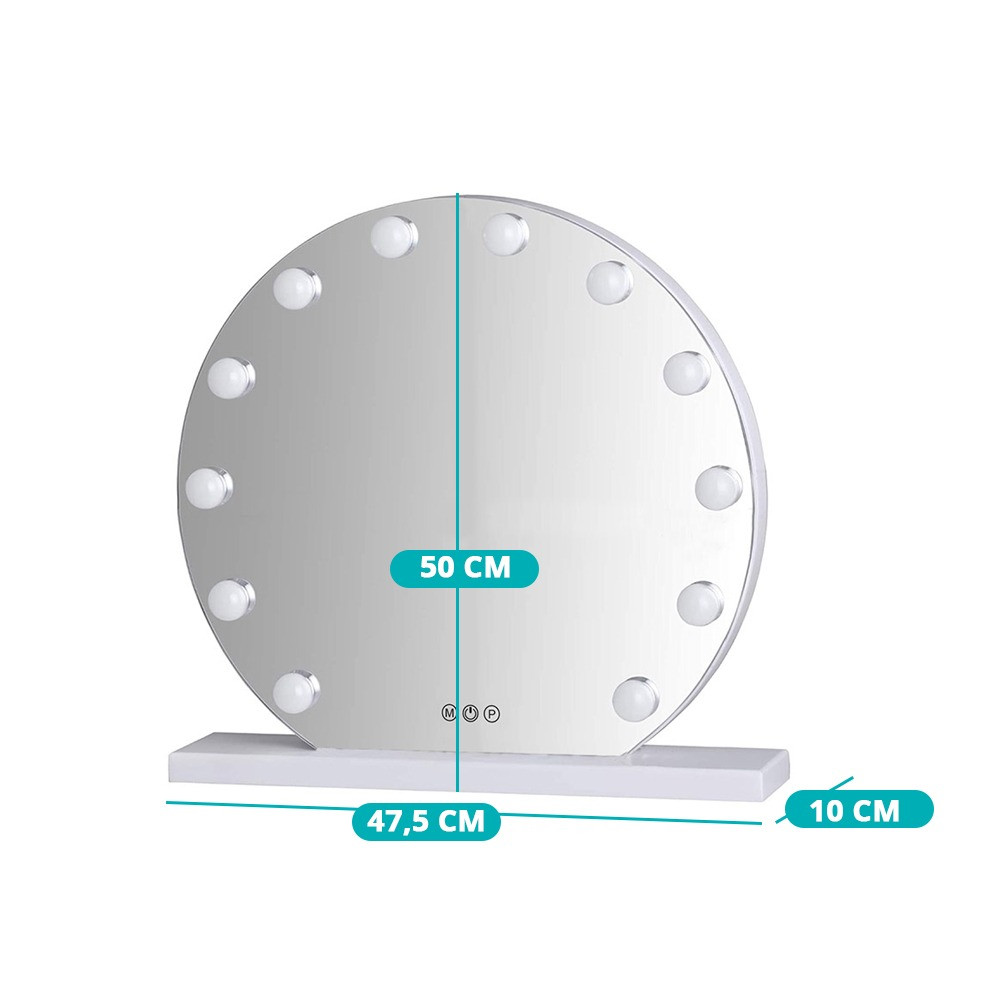 Zrcadlo je vybaveno 12 LED žárovkami, které poskytují rovnoměrné osvětlení ve třech různých odstínech: denní světlo, studená bílá a teplá žlutá. Pomocí dotykového ovládání můžete jednoduše upravit intenzitu světla tak, aby vyhovovalo vašemu prostředí a individuálním potřebám.