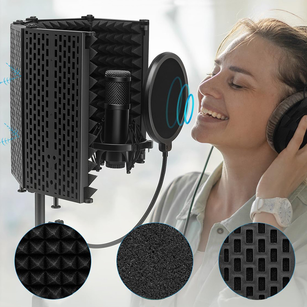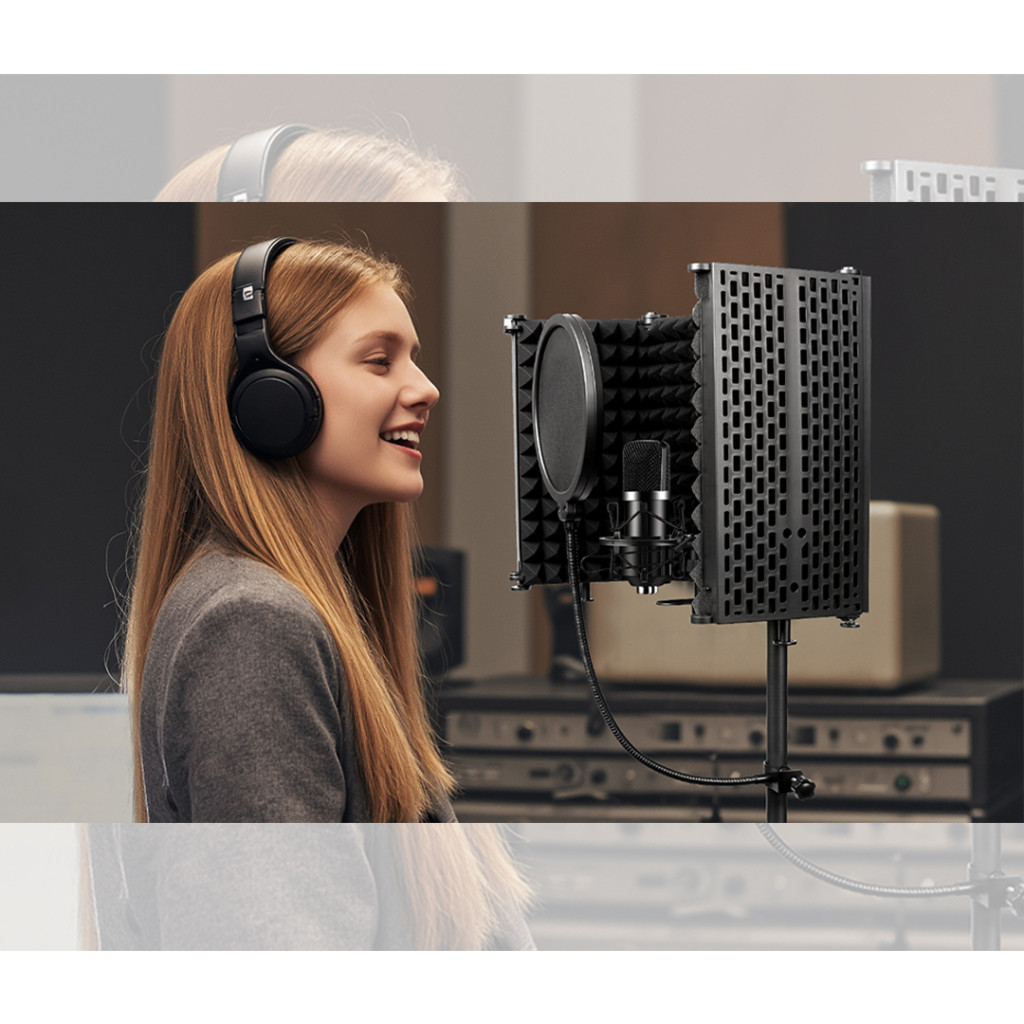 Přiložená zakřivená akustická pěna efektivně pohlcuje ozvěnu a okolní hluk, takže nahrávka zachytí každý detail vašeho hlasu. Vestavěný pop-filtr eliminuje praskavé zvuky (např. P a B), díky čemuž budou vaše nahrávky znít ještě profesionálněji.