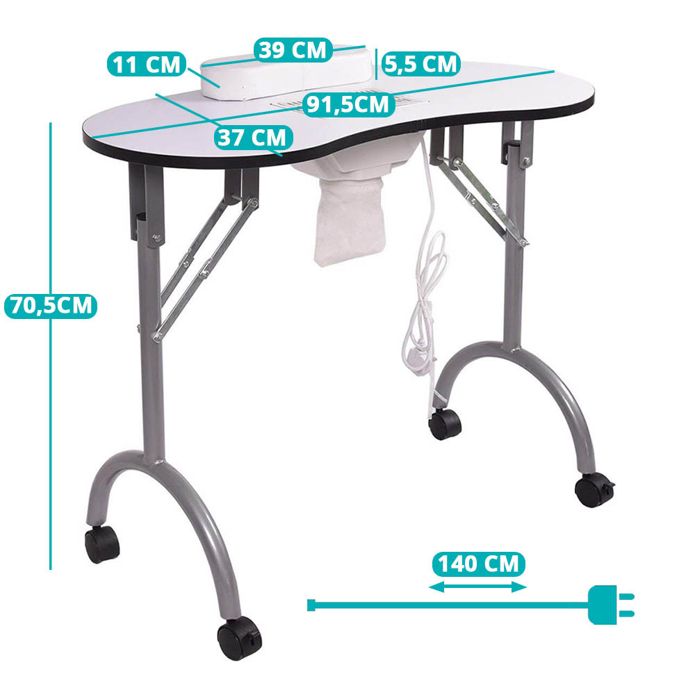 Manikúrní stůl s vestavěným ventilátorem účinně odsává prach při pilování, čímž zajišťuje hygienické podmínky – ať už v salonu, nebo při domácích návštěvách.