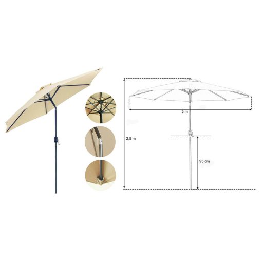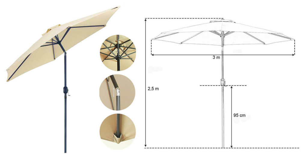 Extra velký slunečník s průměrem 2,7 metru nabízí dostatek stínu pro letní relax. Ať už jde o oběd na terase nebo čtení u bazénu, vždy poskytne příjemný chládek.