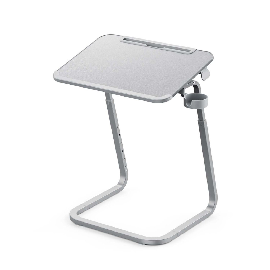 Integrovaný držák na tablet usnadňuje sledování oblíbených pořadů, čtení zpráv nebo uskutečňování videohovorů, zatímco držák na nápoj poskytuje bezpečné místo pro váš oblíbený nápoj. Stabilní protiskluzové nohy zaručují, že používání stolku bude vždy bezproblémové.