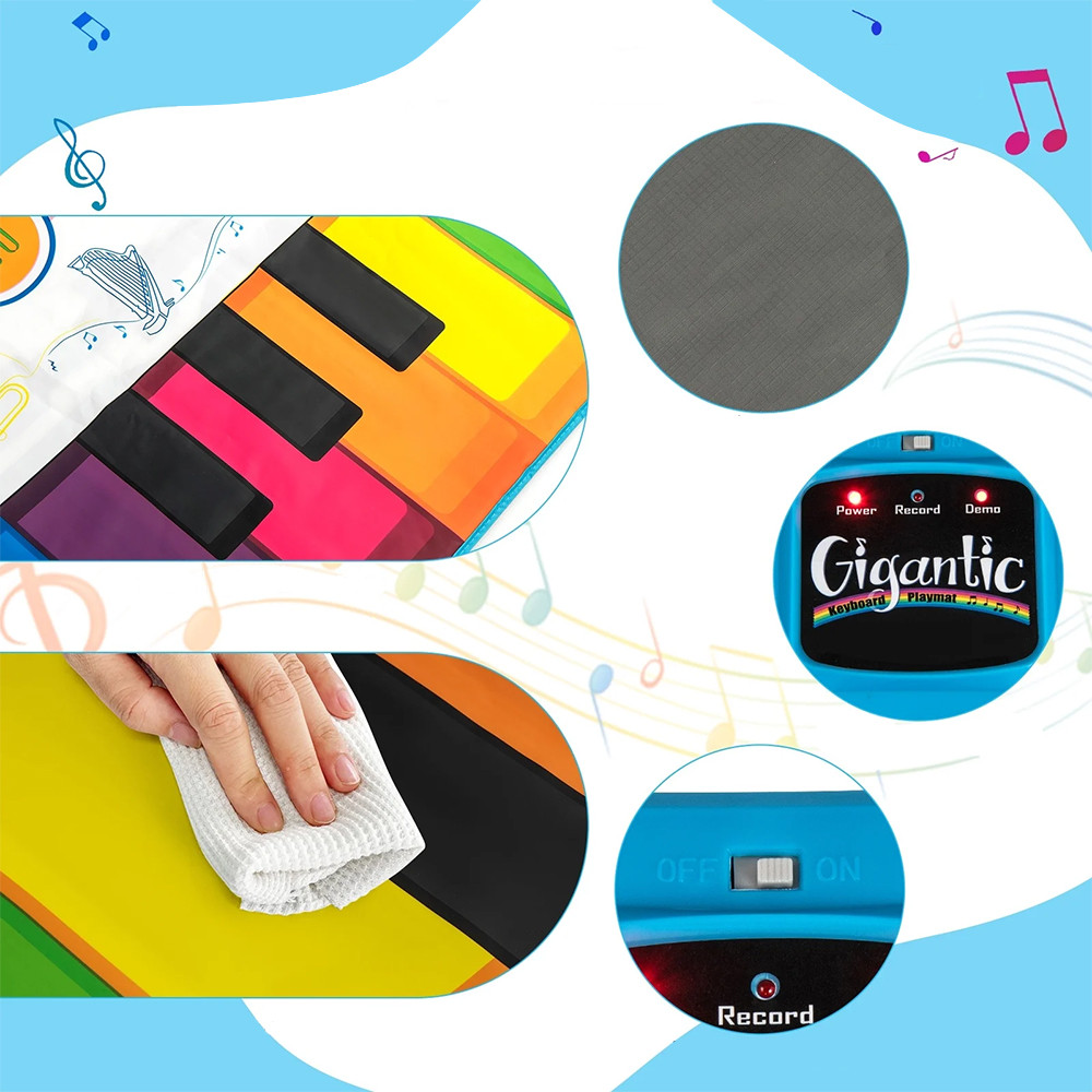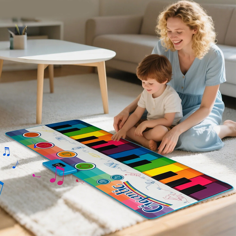 Taneční podložka s barevnými klávesami umožňuje dětem vytvářet hudbu během pohybu. Hra podporuje aktivní zapojení a kreativní sebevyjádření.