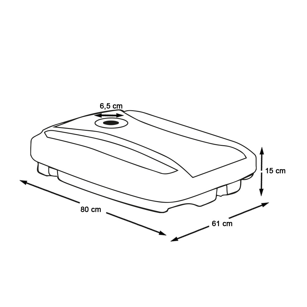 Lehká plastová konstrukce se prázdná snadno přenáší a skladuje, po naplnění vodou nebo pískem však poskytuje skvělou stabilitu. Díky nastavitelné hmotnosti lze přizpůsobit okolnímu prostředí i typu slunečníku.