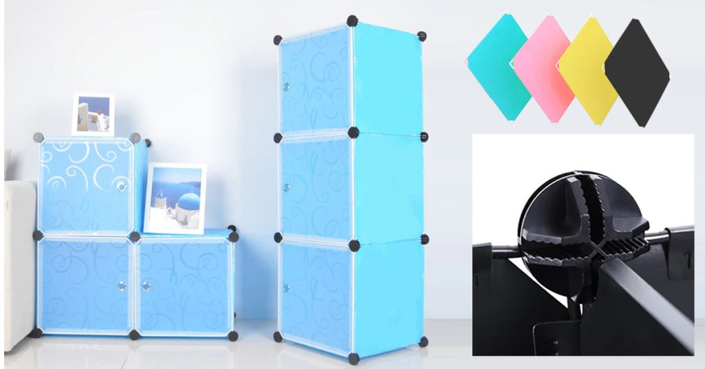 Skříň se skládá z 10 samostatných přihrádek, které můžete libovolně skládat na sebe nebo vedle sebe. Pokud potřebujete, můžete ji pomocí přiložené kovové tyče přeměnit na šatní skříň s tyčí na ramínka, což zajistí, že vaše oblečení bude vždy přehledně uspořádané.